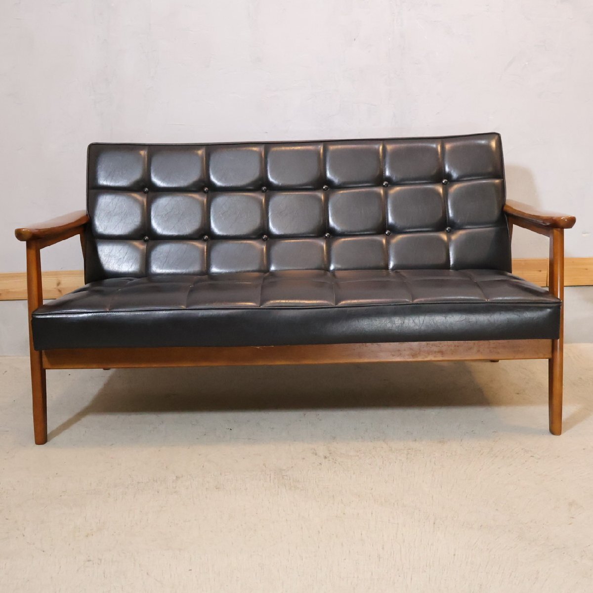 Karimoku Kチェア ブラック 2シーターソファ 2人掛けソファ ラブソファ 2Pソファ カフェ風 レトロ 北欧スタイル オールドカリモク FF117