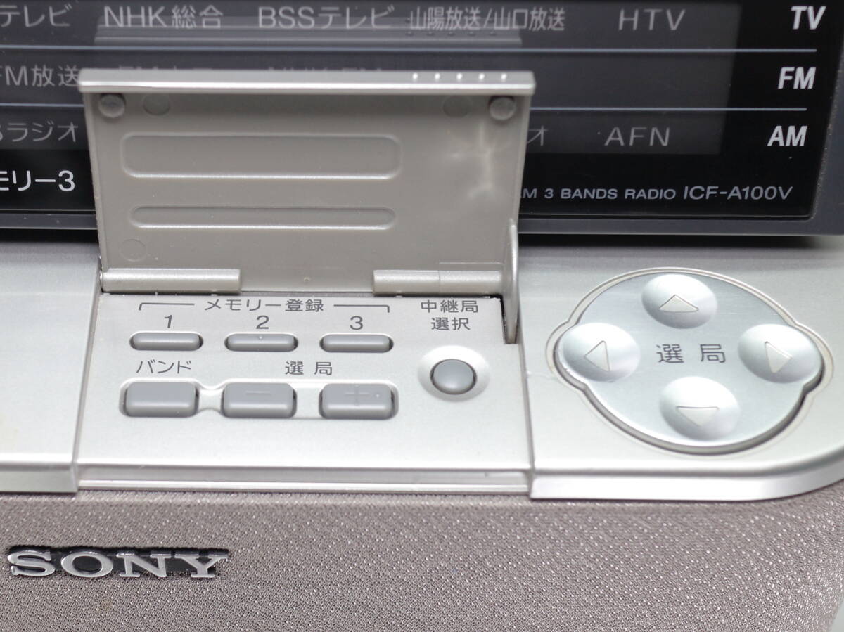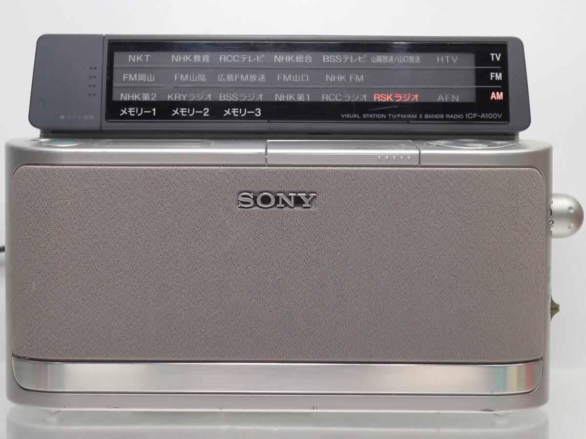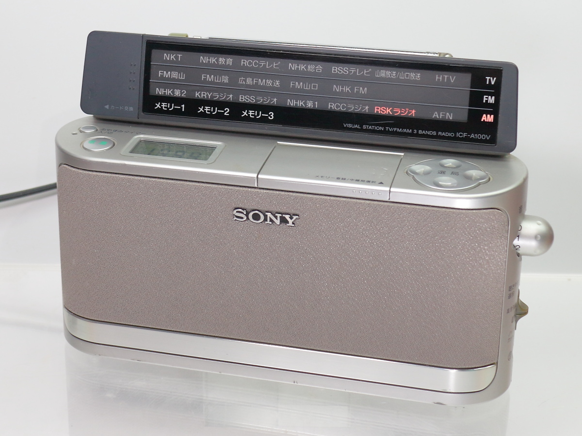| SONY/ソニー TV(1-12ch)/FM/AM PLLシンセサイザーラジオ ICF-A100V / 地域別局名表示カード14枚付属 / 受信確認済 / イヤホン欠品 | ||
