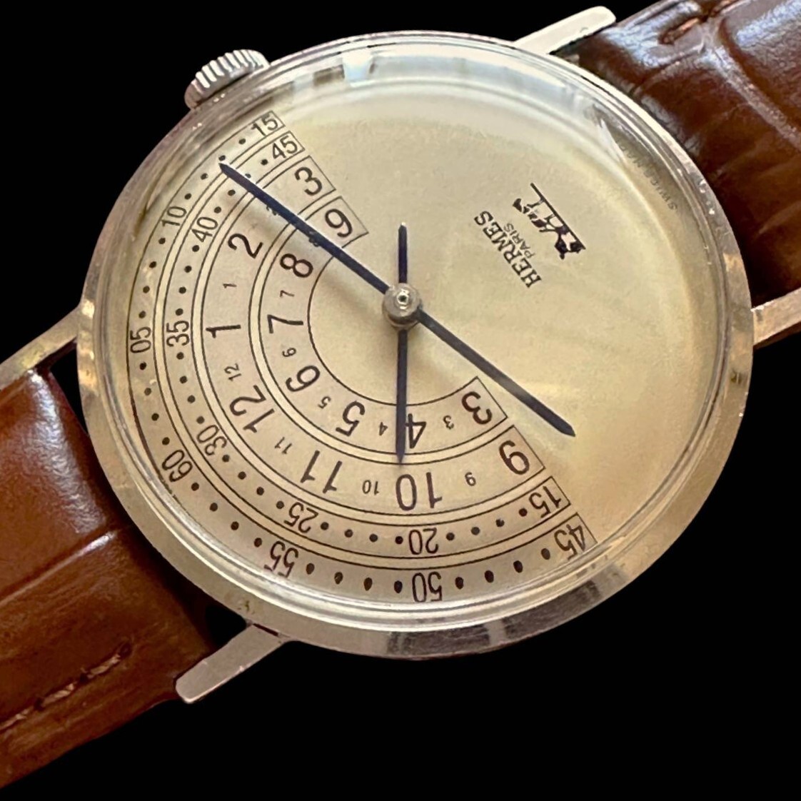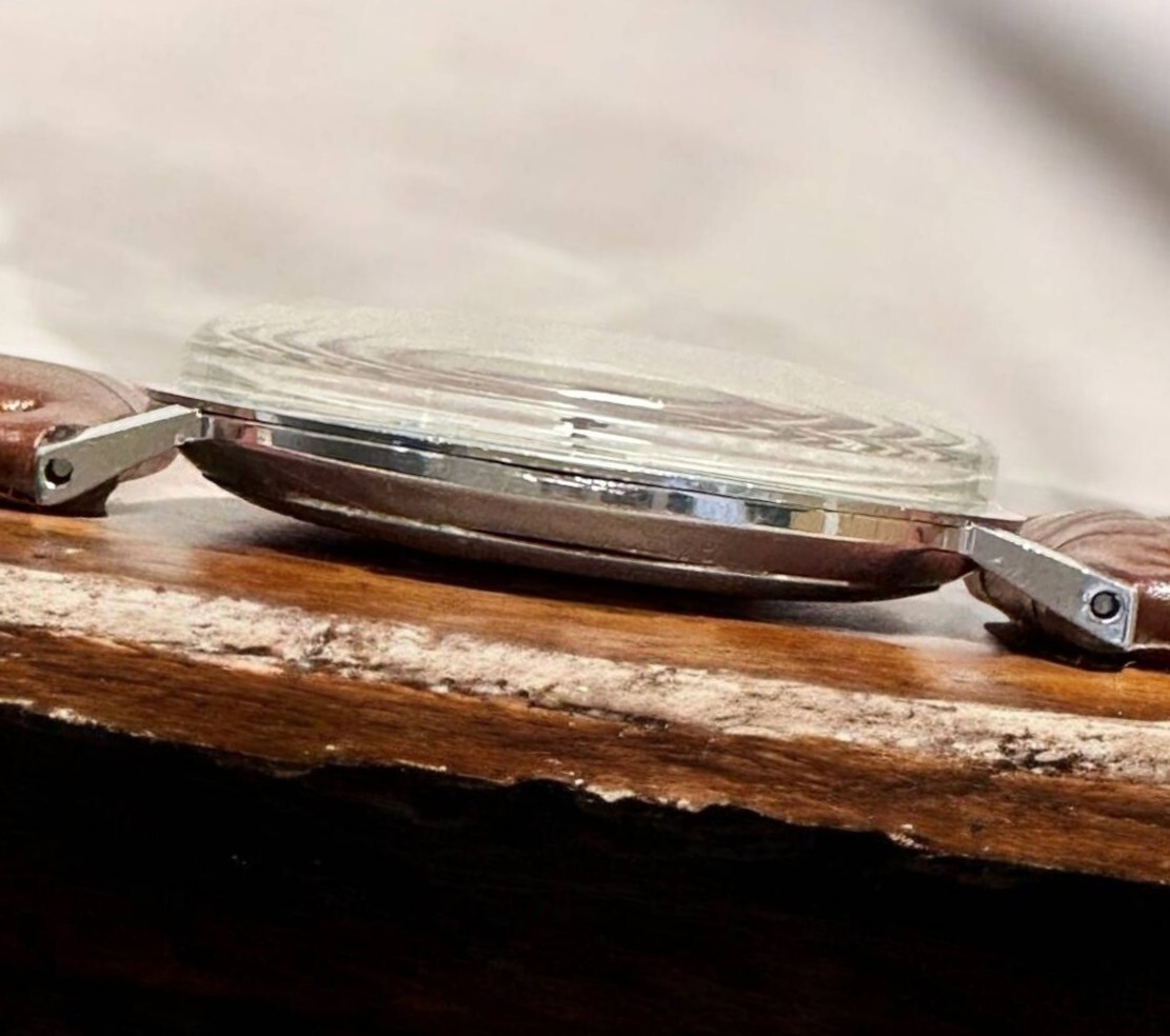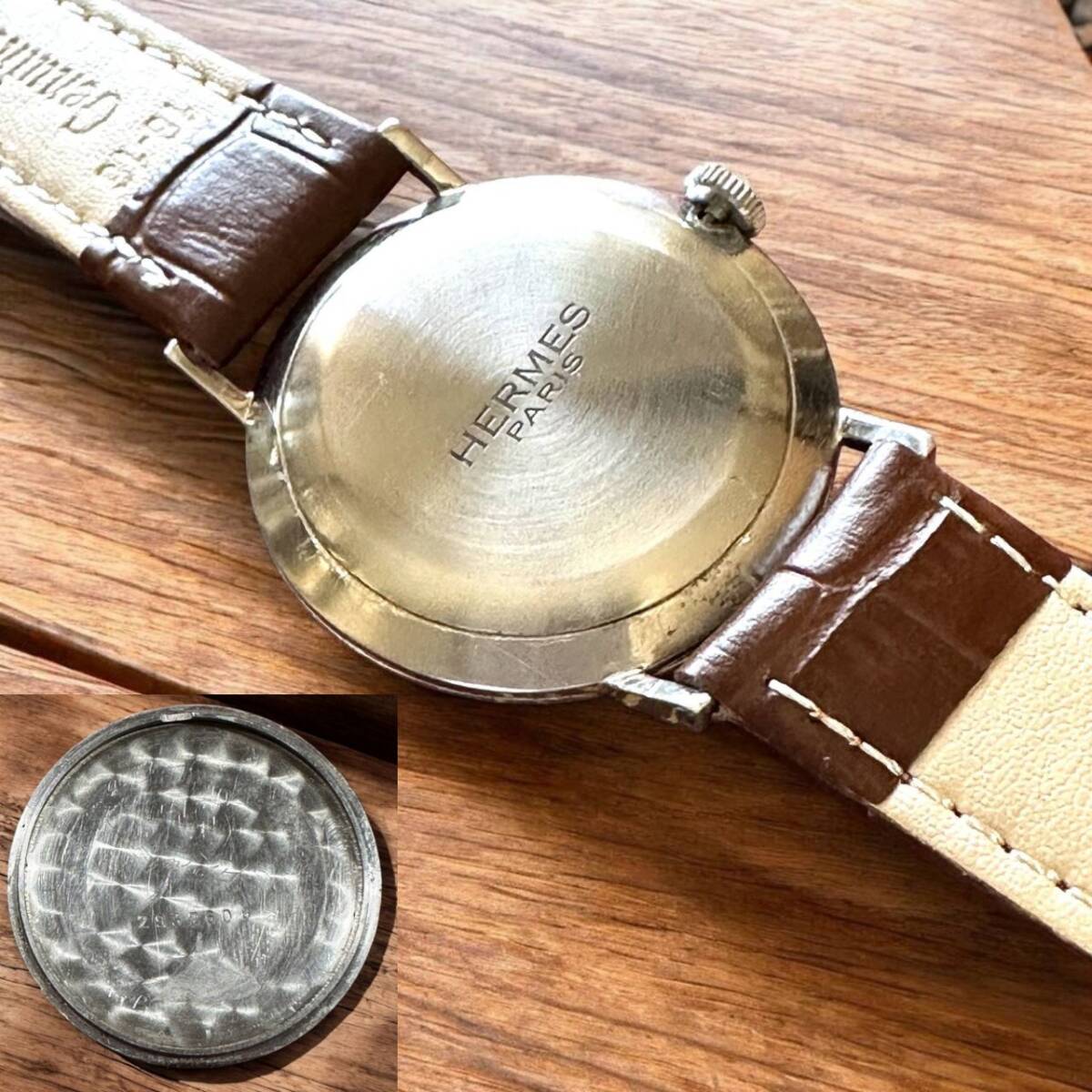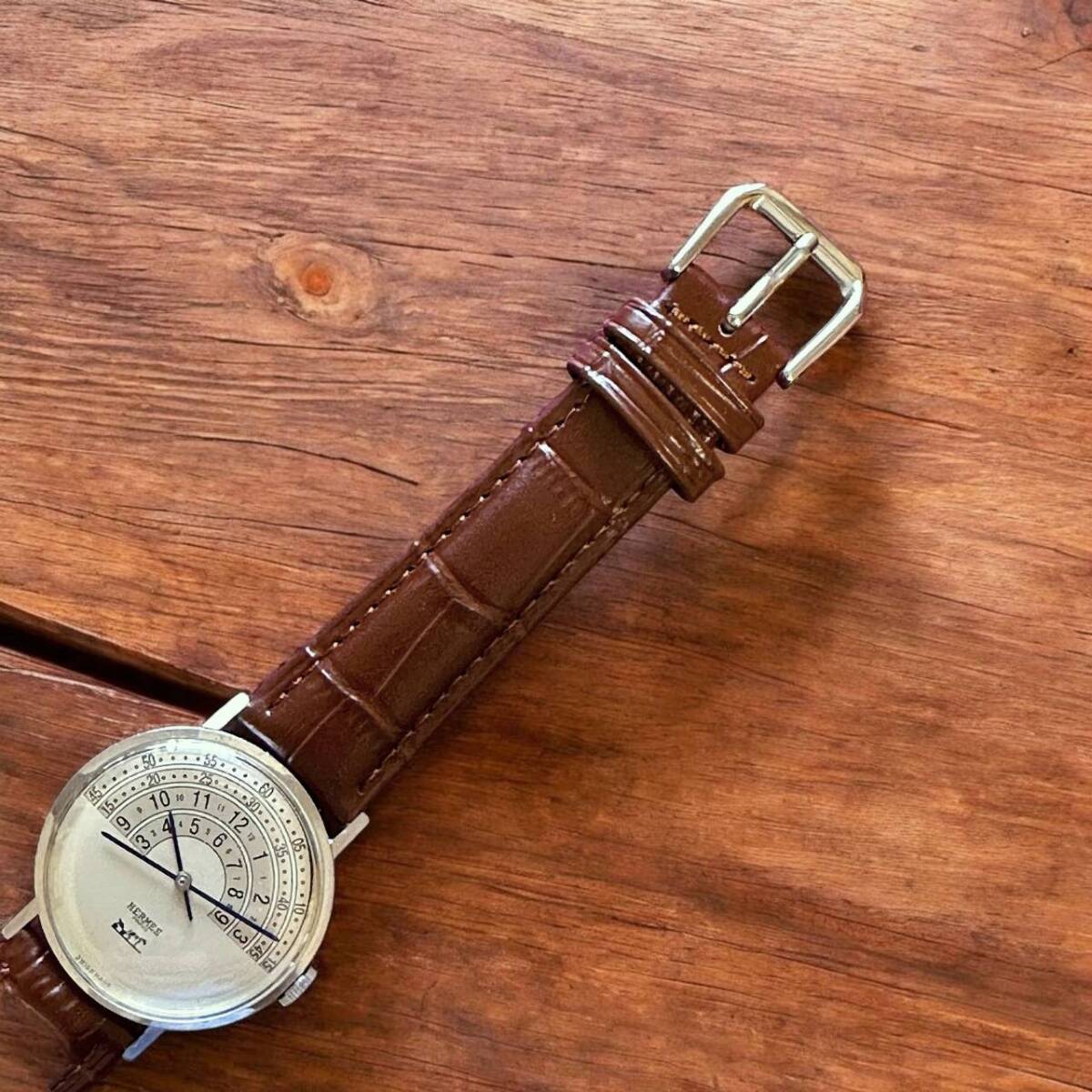 ご覧いただきまして、誠にありがとうございます。 【サイズ等】 ケース:約33.9mm(リューズを除く) ラグ幅: 約17.5mm ムーブメント:手巻き 年代:20世紀半ば頃 【特徴】 ①1枚目の時間は10時12分です。 ②1930年代頃から、『わざと文字盤が読みづらい時計』が流行しました。先進的なデザインが与えられ、人気を博しました。コレクターズアイテムとして現在でも人気があります。 【その他】 ※立体物のため、計測上の誤差はあり得ます。 ※ベルトと尾錠は社外品です(お好みに合わせて交換を前提としております)。 ※色合いを完全に再現することが困難です。ご了承ください。 ※アンティーク時計特有のスレ傷や汚れなどがあります。全てを写真に撮影することは困難であり、ご了承ください。 ※日差は5分以内とお考え下さい。手巻きのアンティーク時計の場合、姿勢や環境、リューズの巻き上げ具合によって異なります。 |