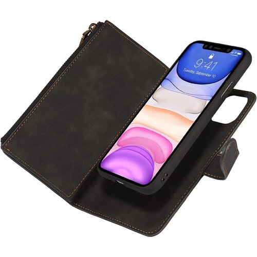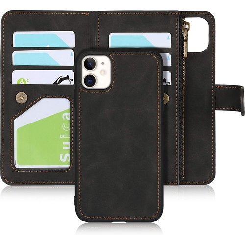 Eastwave アイフォン 11 iPhone 11 ケース 手帳型 iPhone 11 ケース 財布型 iphone11 カバー PUレザー+ブラックTPUソフト ケース 二合一の設計 財布型 正面ICカード ベルトマグネット 手作り 耐久性-ブラック 712