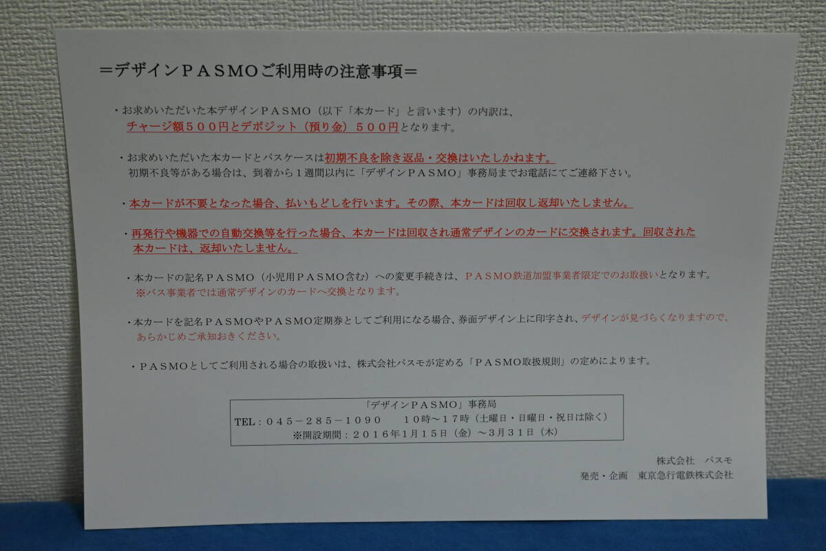 デザイン PASMO  残額 500円 未使用