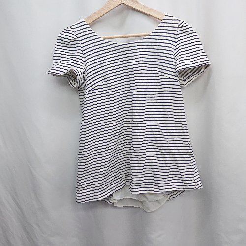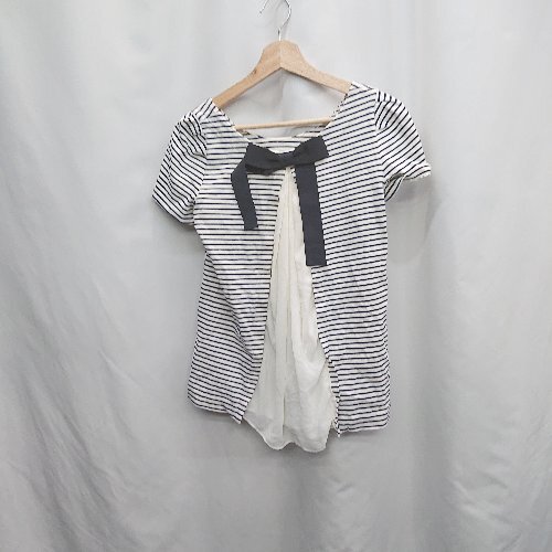 ◇ ⊂ ティアラ ボーダー柄 リボン有 半袖 カットソー サイズ表記なし ブラック系 レディース E