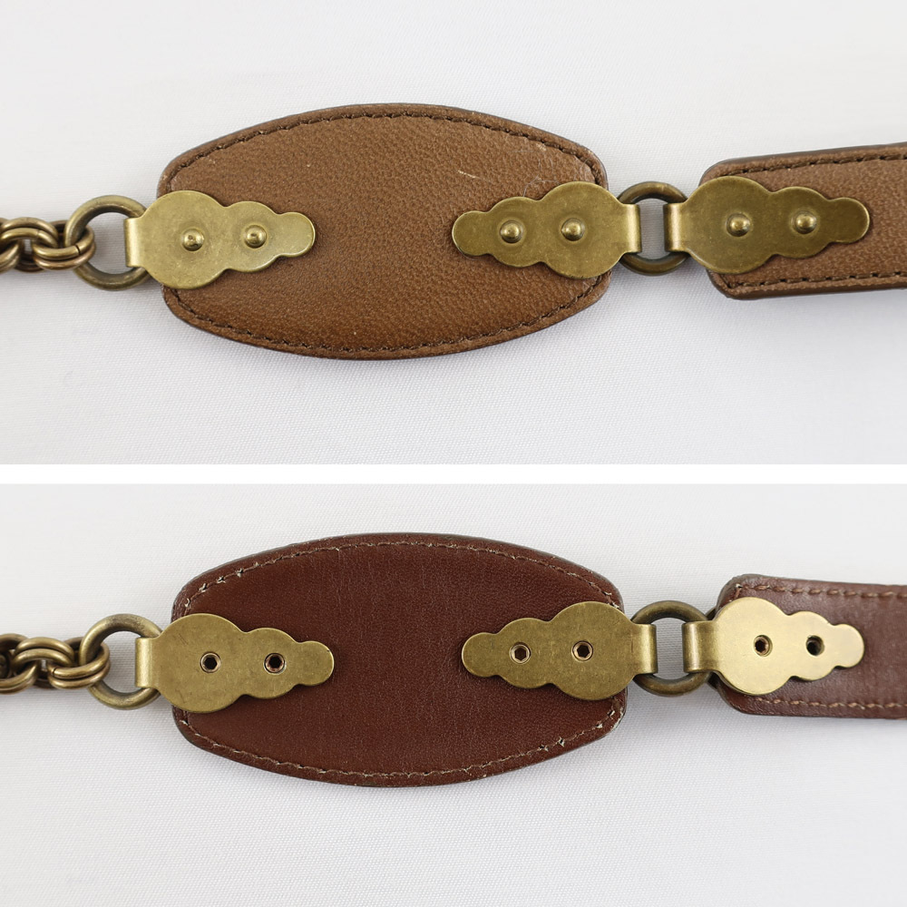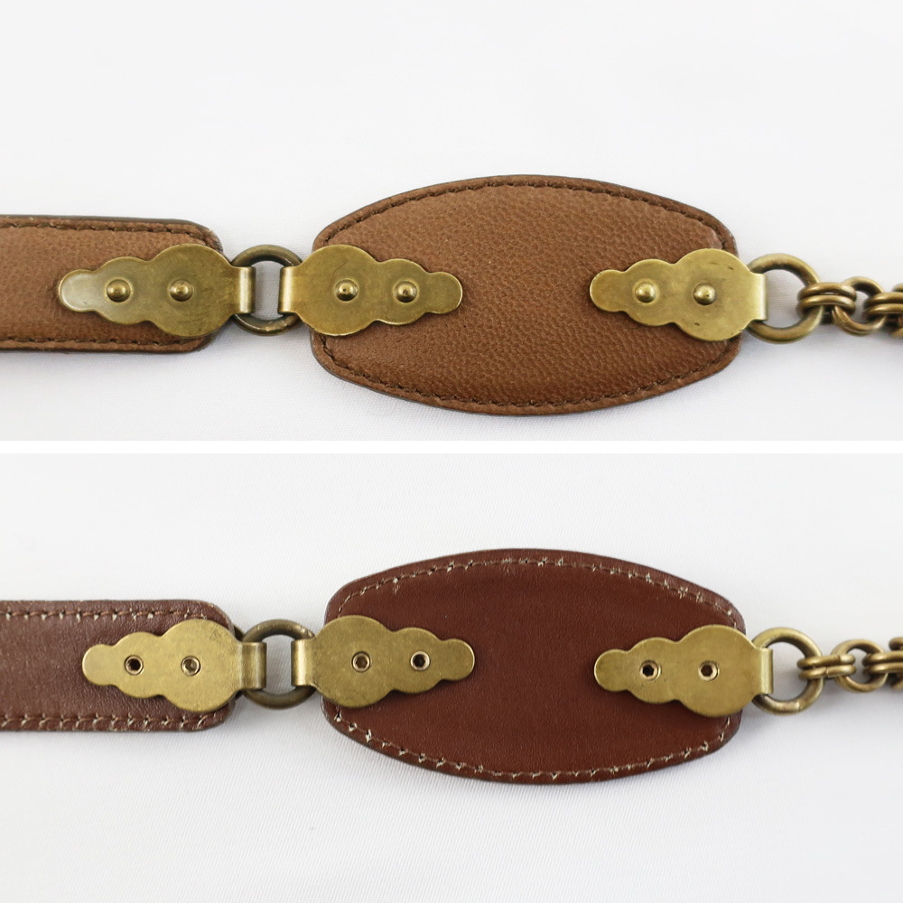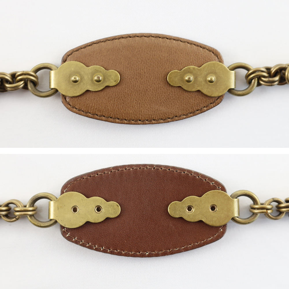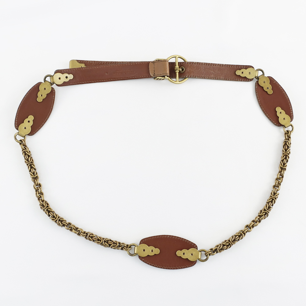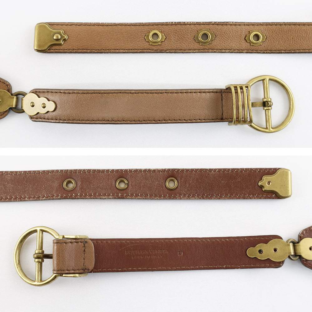 【天白】ボッテガヴェネタ ベルト ブラウン ゴールド金具 表記サイズM チェーン レザー ファッション 小物 レディース
