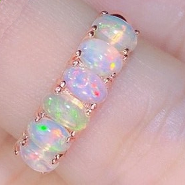 天然オパールの指輪、日常着、3mm x 5mm
