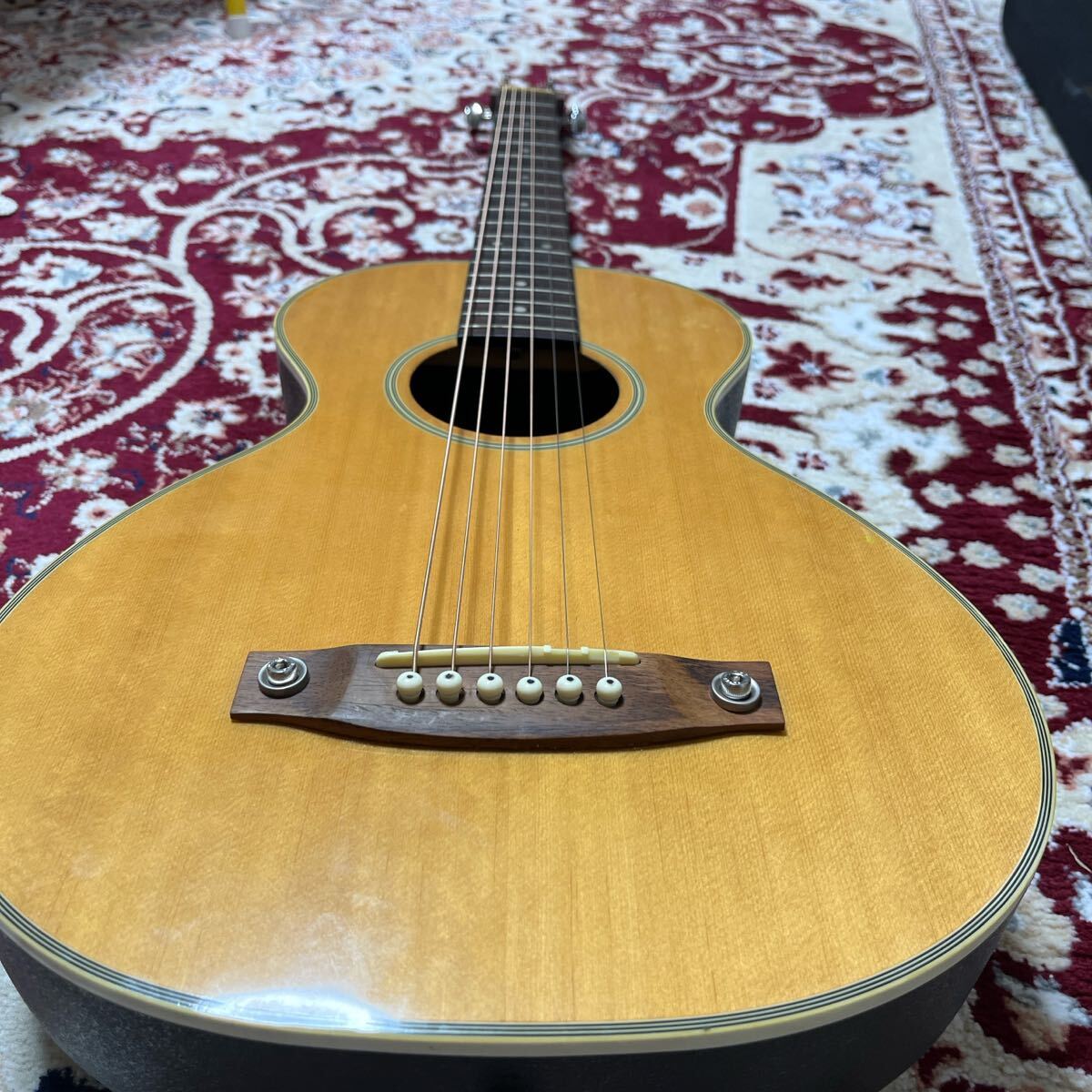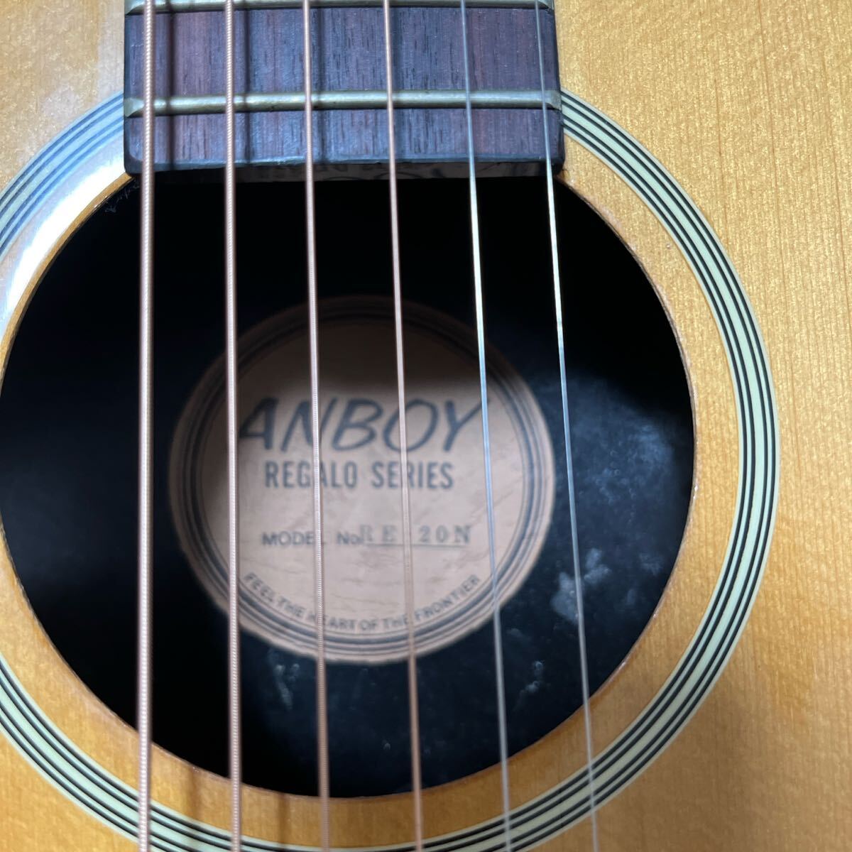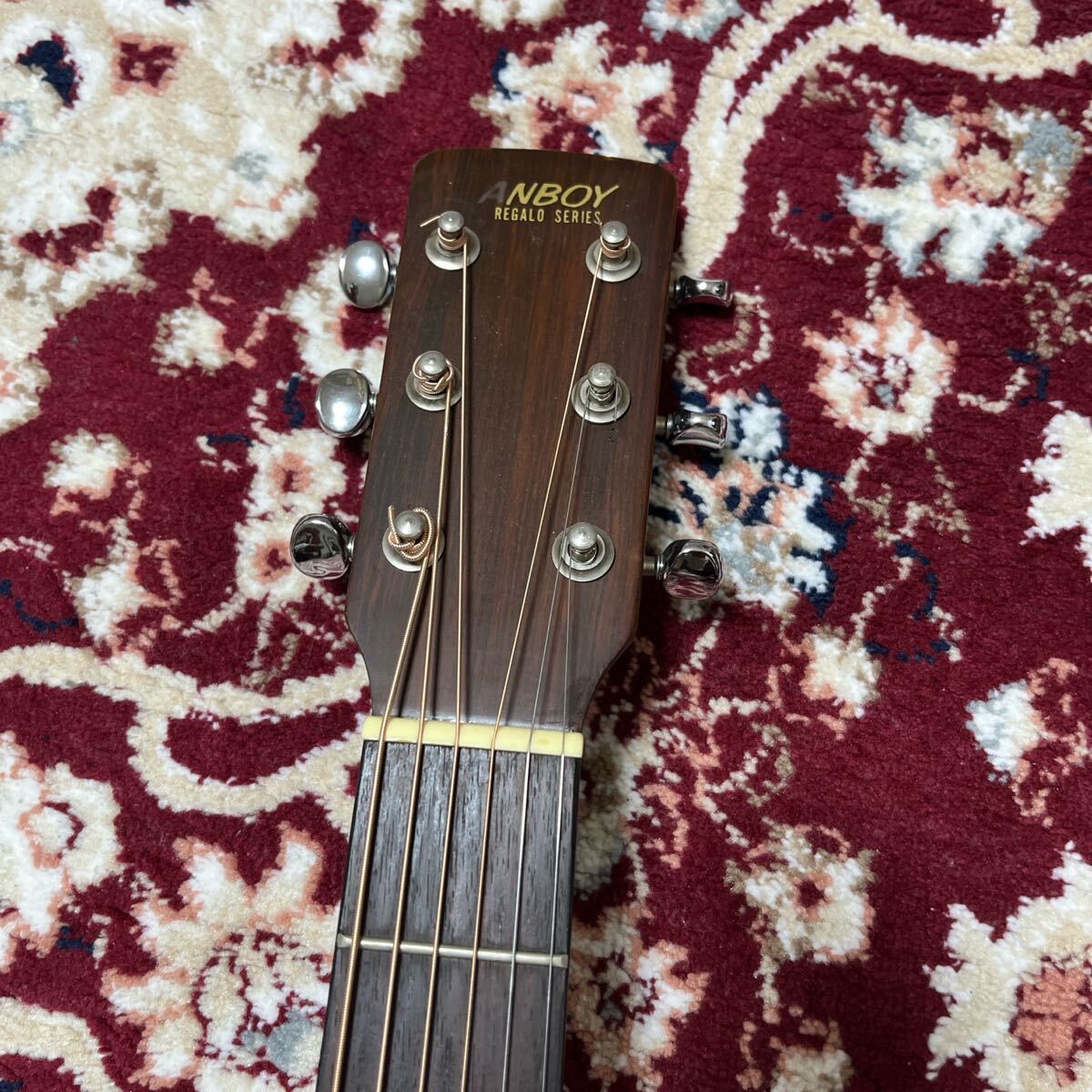ナチュラルカラーのANBOY REGALO SERIESアコースティックギター、ウッドブリッジ仕様で6弦。