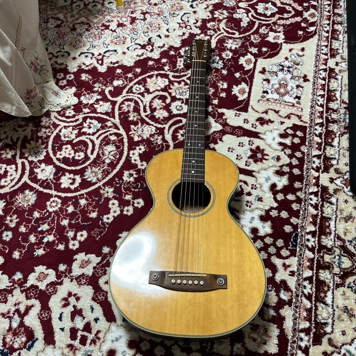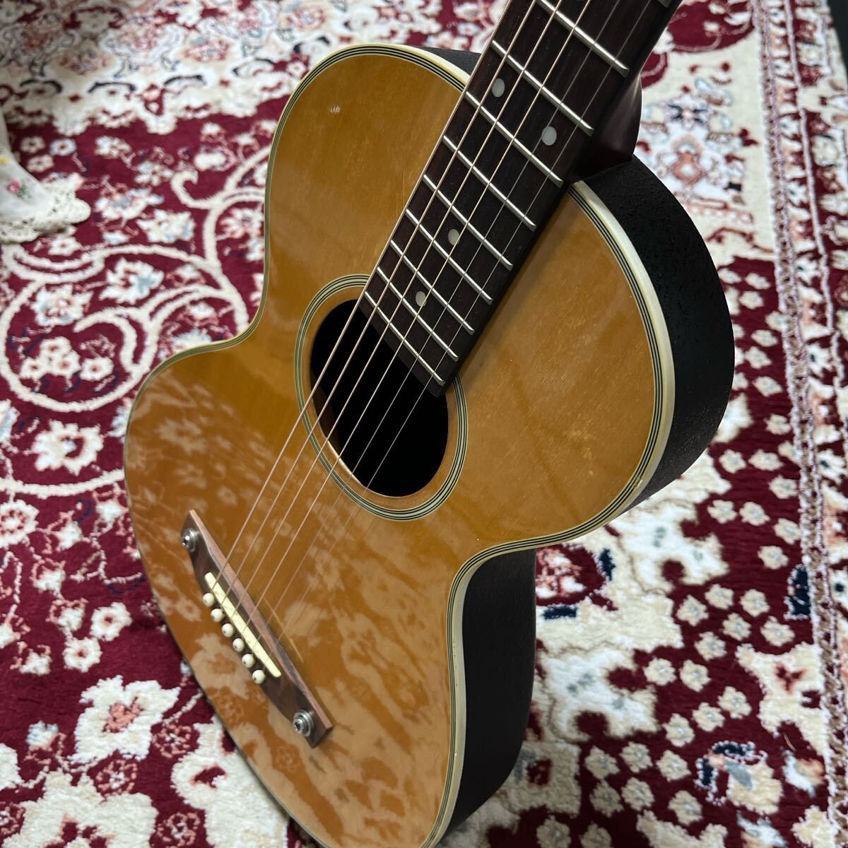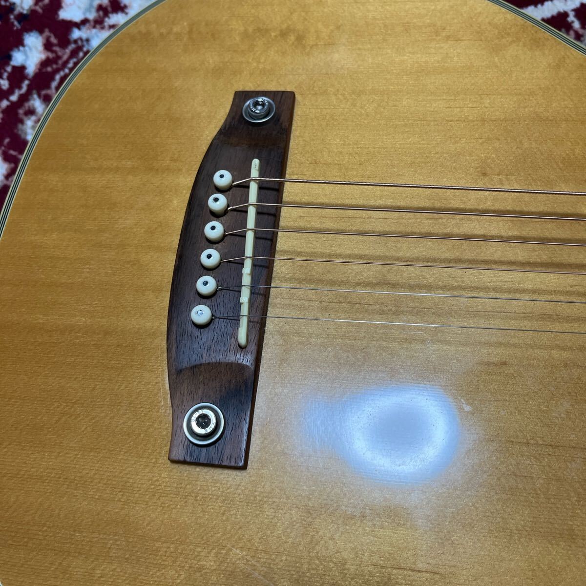 ナチュラルカラーのANBOY REGALO SERIESアコースティックギター、ウッドブリッジ仕様で6弦。