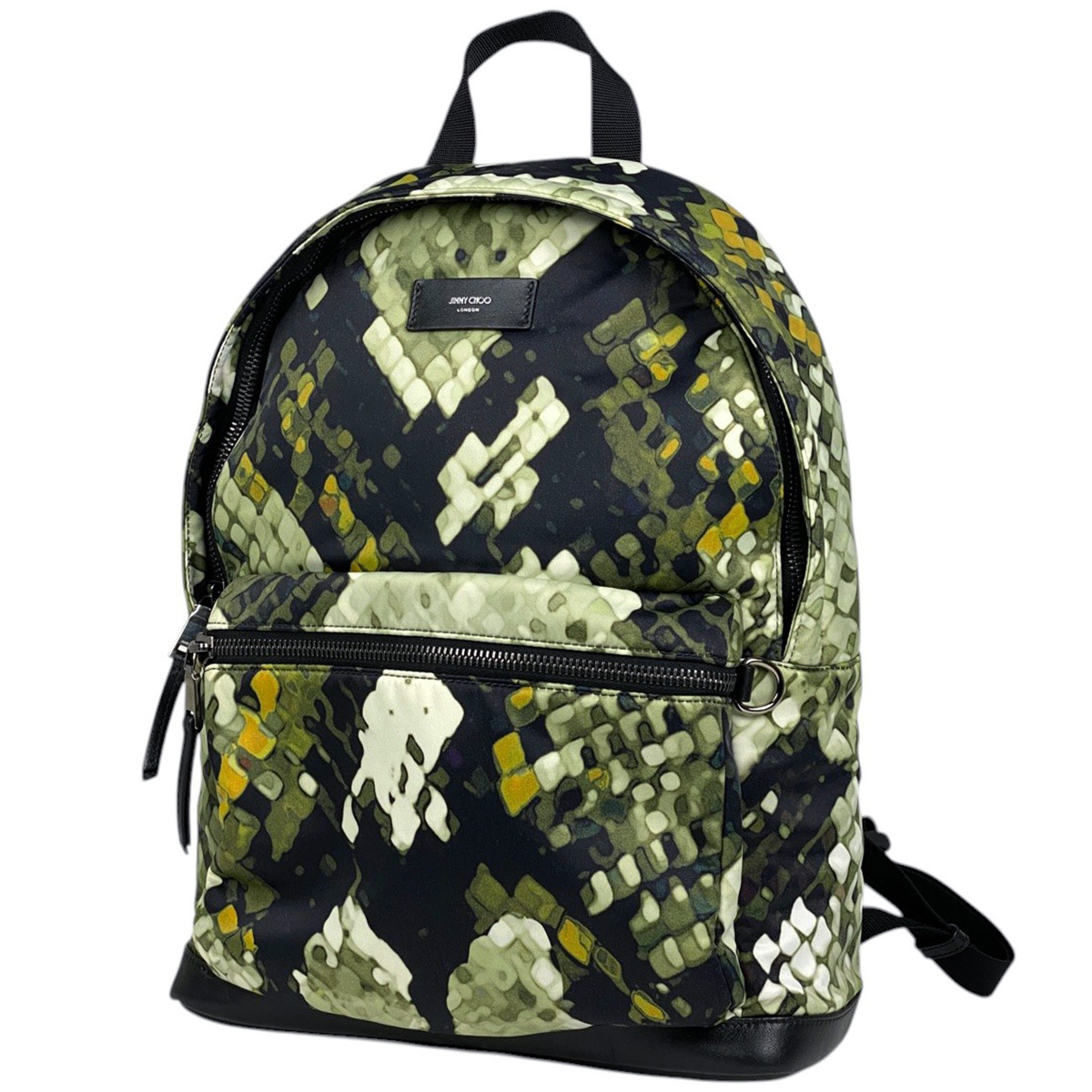 ジミーチュウ JIMMY CHOO ロゴ リュックサック カモフラ 迷彩柄 バックパック デイパック リュック ナイロン グリーン ブラック メンズ 【中古】 |