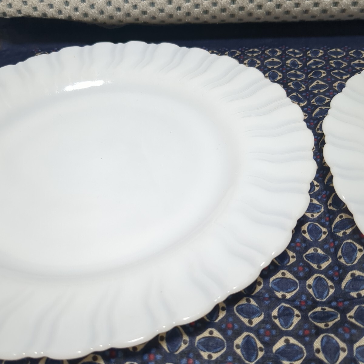コーニング スワール クラウンディナープレート ミルクグラス 皿 アンティーク TOUGHENEO