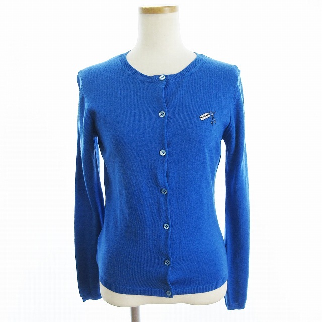 ポールスミス ブラック カーディガン ニット 長袖 前開き クルーネック ワンポイント 鍵 刺繍 ウール 青 ブルー M ■GY14