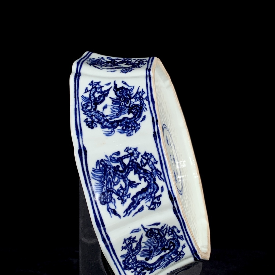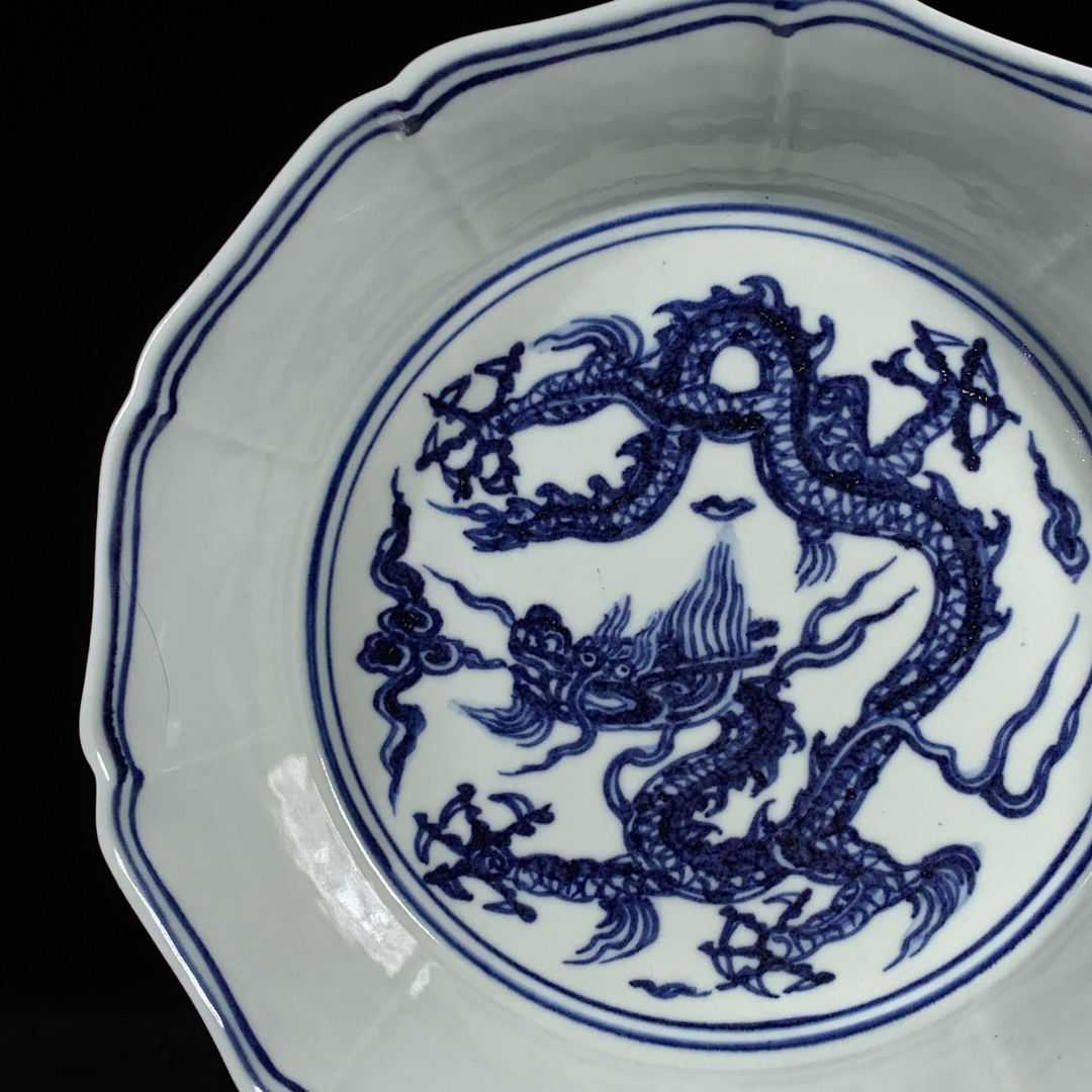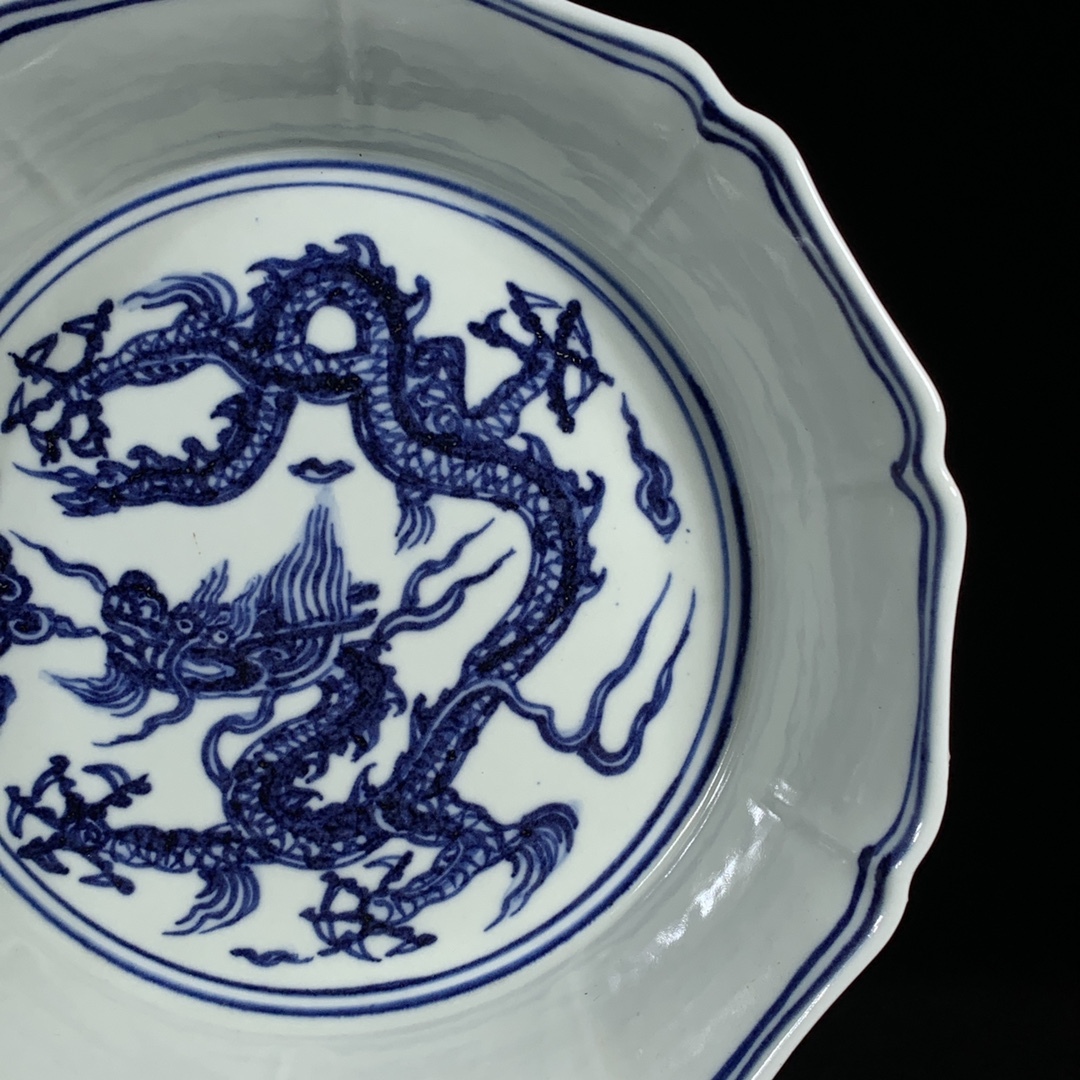 *珍品旧蔵* 明 宣德年製 青花 龍紋 十角洗 陶芸 古陶磁器 中国磁器 極細工 唐物 中国古玩 骨董品 古美味 H46