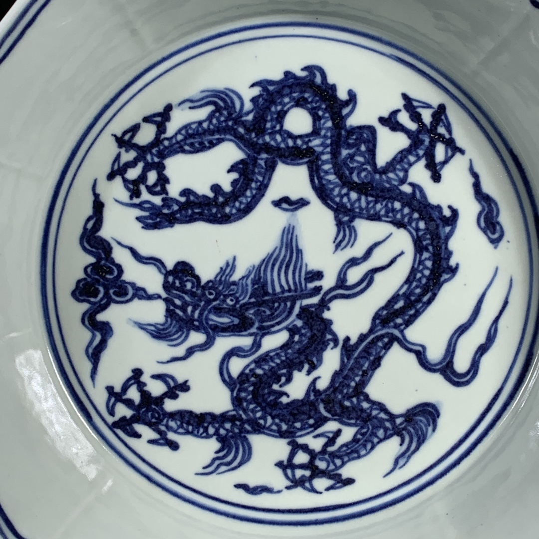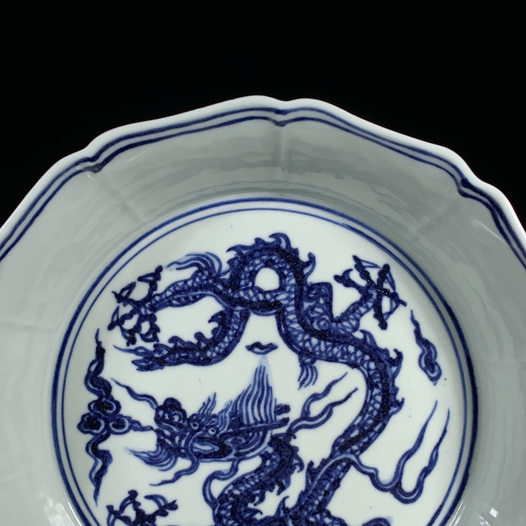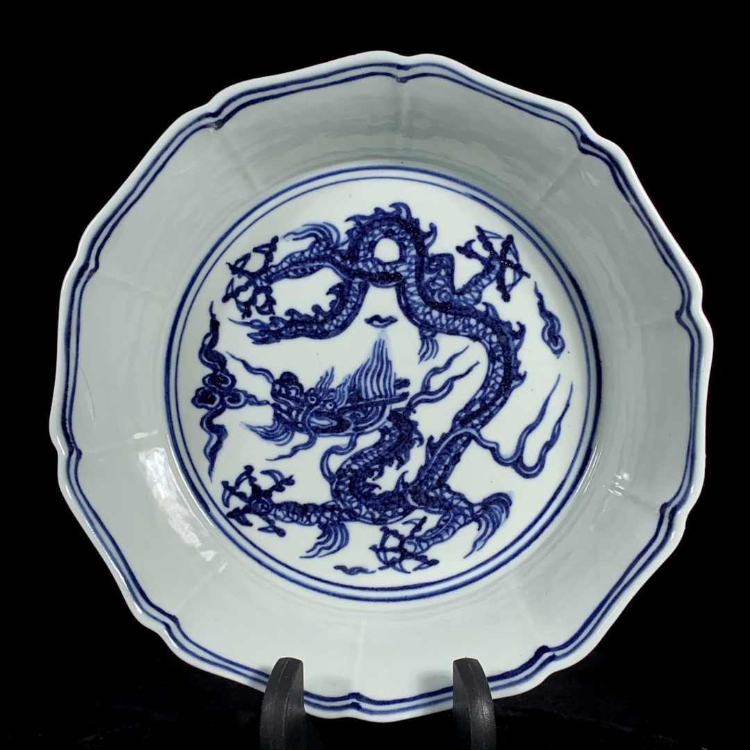 *珍品旧蔵* 明 宣德年製 青花 龍紋 十角洗 陶芸 古陶磁器 中国磁器 極細工 唐物 中国古玩 骨董品 古美味 H46