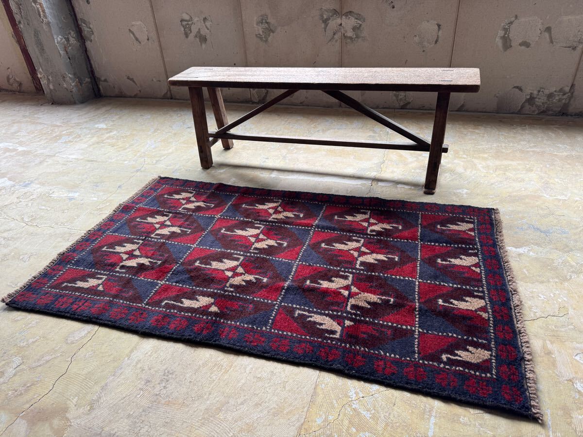 ¥26,000→¥16,000 トライバルラグ ヴィンテージ家具 143×83cm 手織り 絨毯 カーペット ヴィンテージ ラグ ペルシャ絨毯