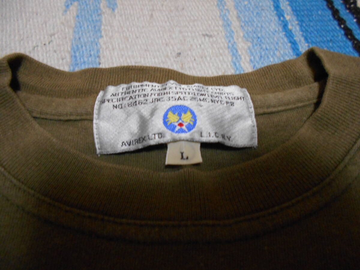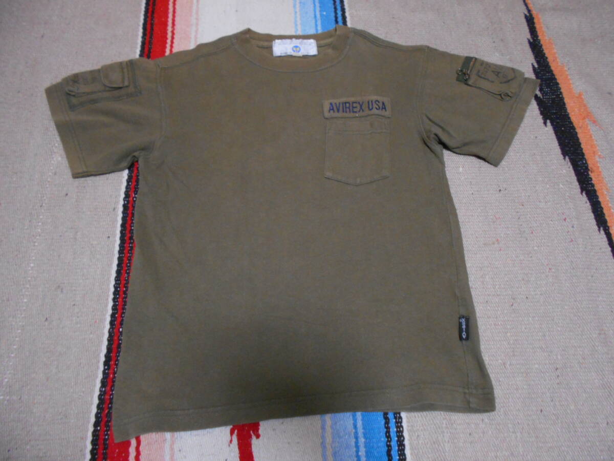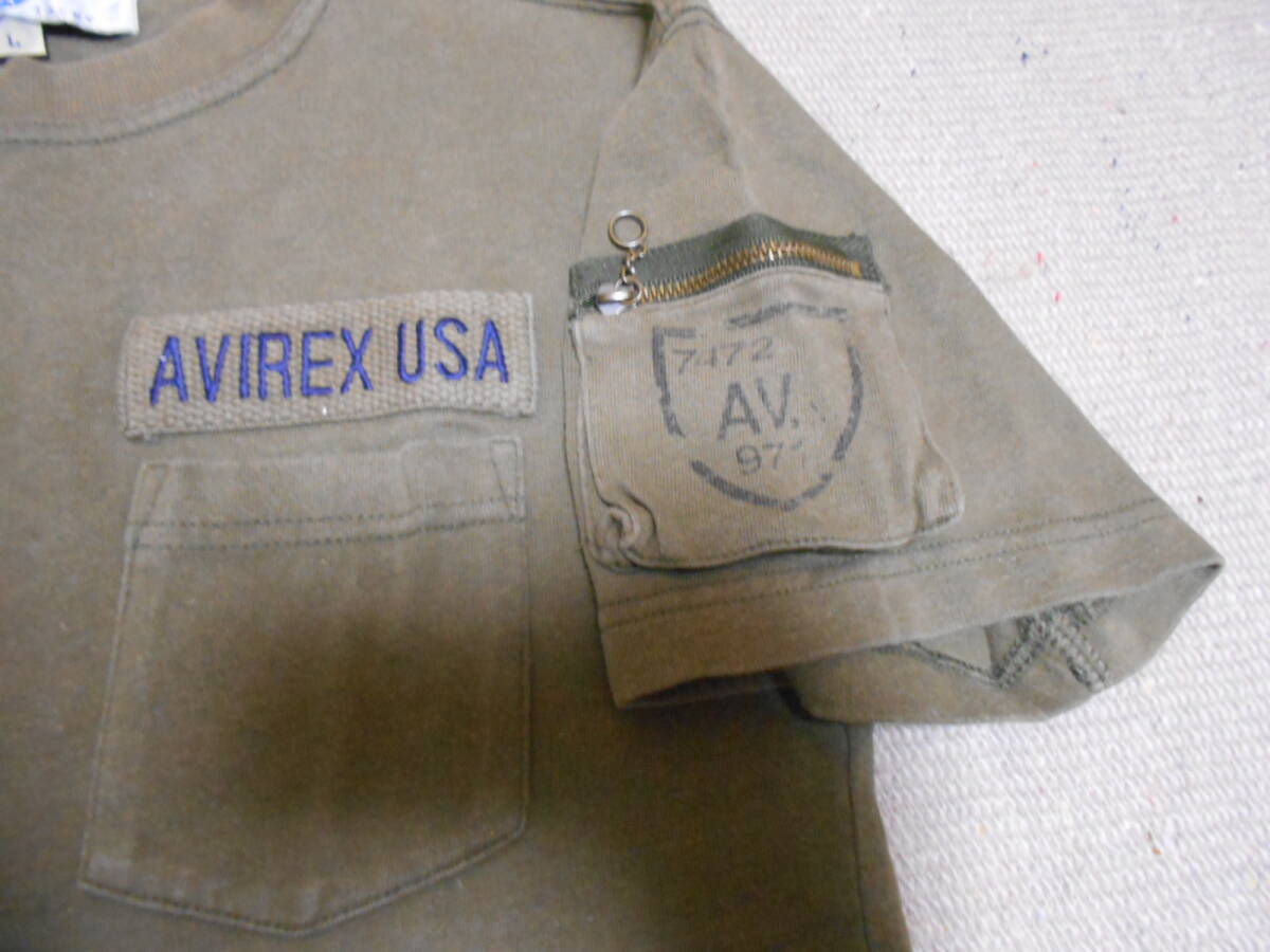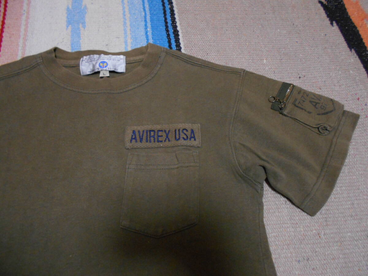 米軍軍服正規納入メーカー、歴史あるミリタリーアパレルブランド 「AVIREX USA」ハイコットン厚手素材 クラシック カーゴポケット付き ミリタリーTシャツ