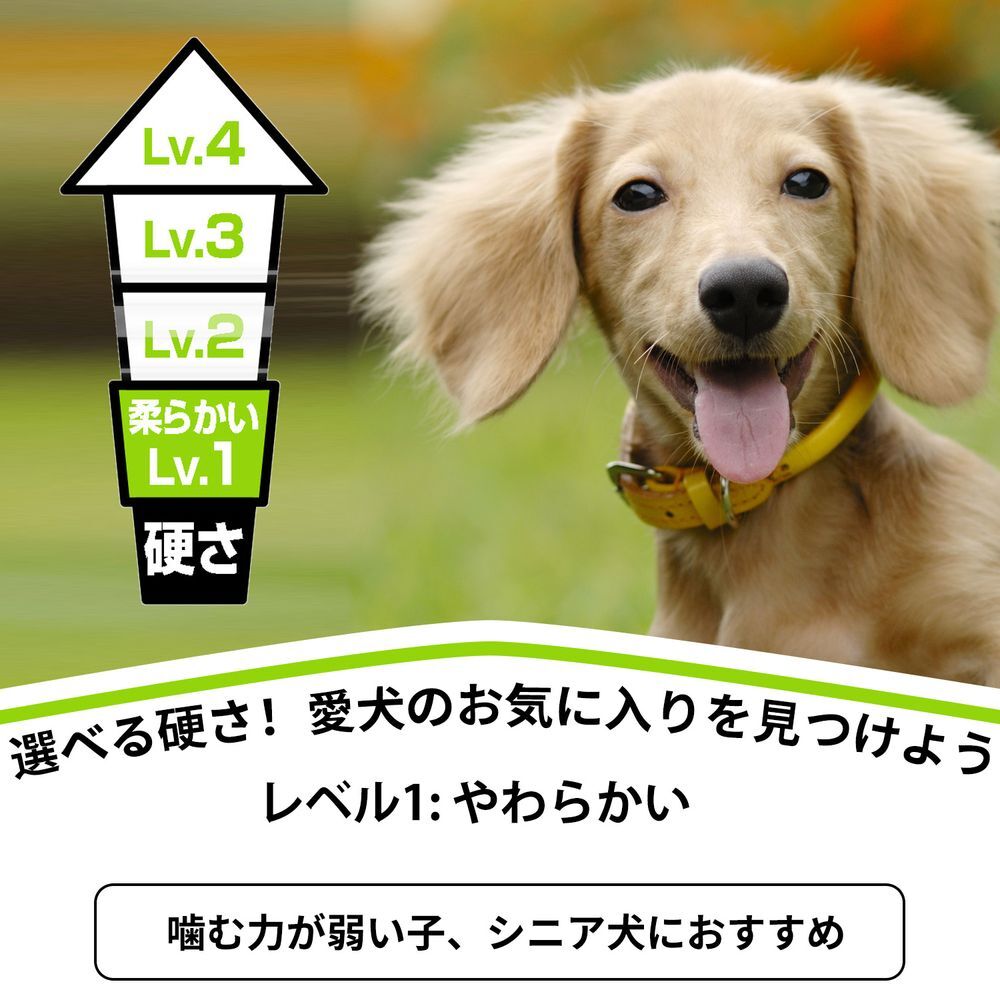 牛皮、鶏ササミ、タピオカ澱粉、オリゴ糖、グルコサミン、コンドロイチン、パセリシードオイル、増粘安定剤(グリセリン、アルギン酸Na)、酸味料(クエン酸)、重炭酸Na、食塩、保存料(ソルビン酸K)、着色料(クロロフィル)