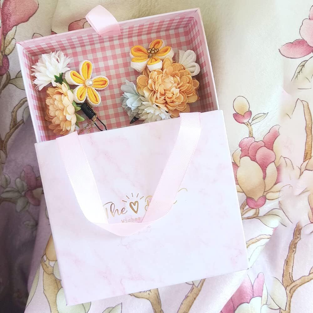 【製品に関して】ボックスには2つのヘアアクセサリーがあります。本商品は手作りのため、サイズや色合いなどが写真と多少異なる場合がございます。
