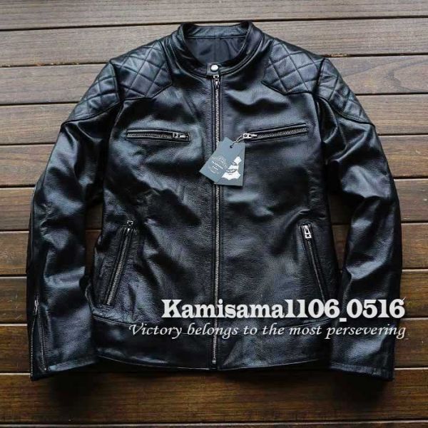上質牛革ですので着馴染みが良く、定番のスタイルですので流行に左右されず、タウンユースはもちろんバイクやオープンカーに乗るときなど様々な様々なシーンで活用できます。
