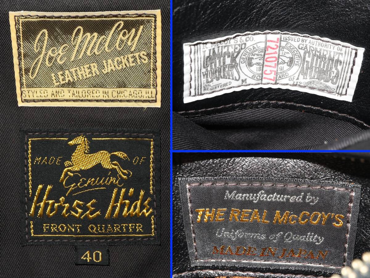 美品 The REAL McCOY'S JOE McCOY ホースハイド ライダース 40 / リアルマッコイズ REAL McCOYS ジョーマッコイ カーコート