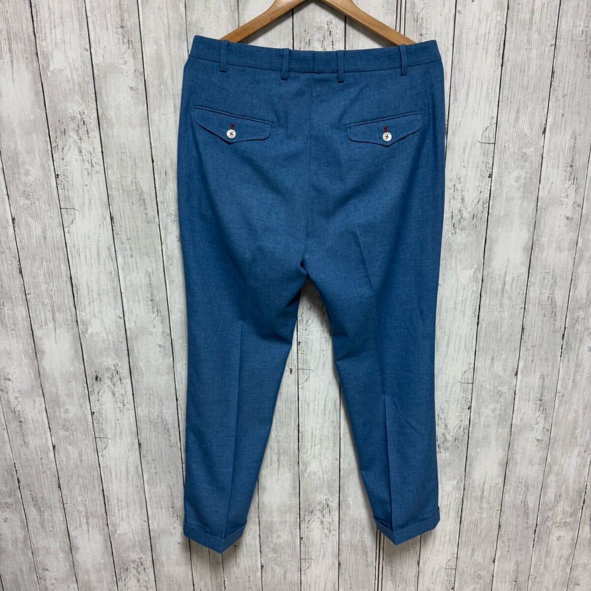 平置きにてウエスト43cm.股上27cm.股下69cm.ワタリ幅30cm.裾幅20cm.総丈95cm