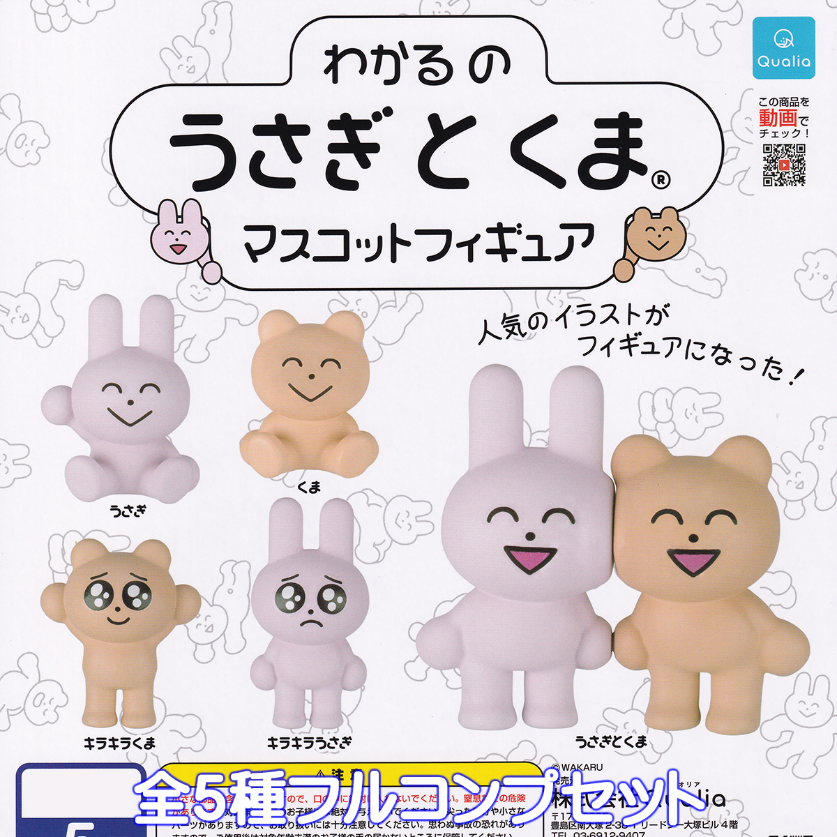わかるのうさぎとくまマスコットフィギュア Qualia 【全5種フルコンプセット】 WAKARU usagi 動物グッズ ガチャガチャ カプセルトイ 105464