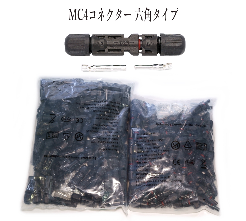 ソーラーパネル 接続ケーブル用 MC4 六角型コネクター 100組セット ソーラー発電 太陽光発電