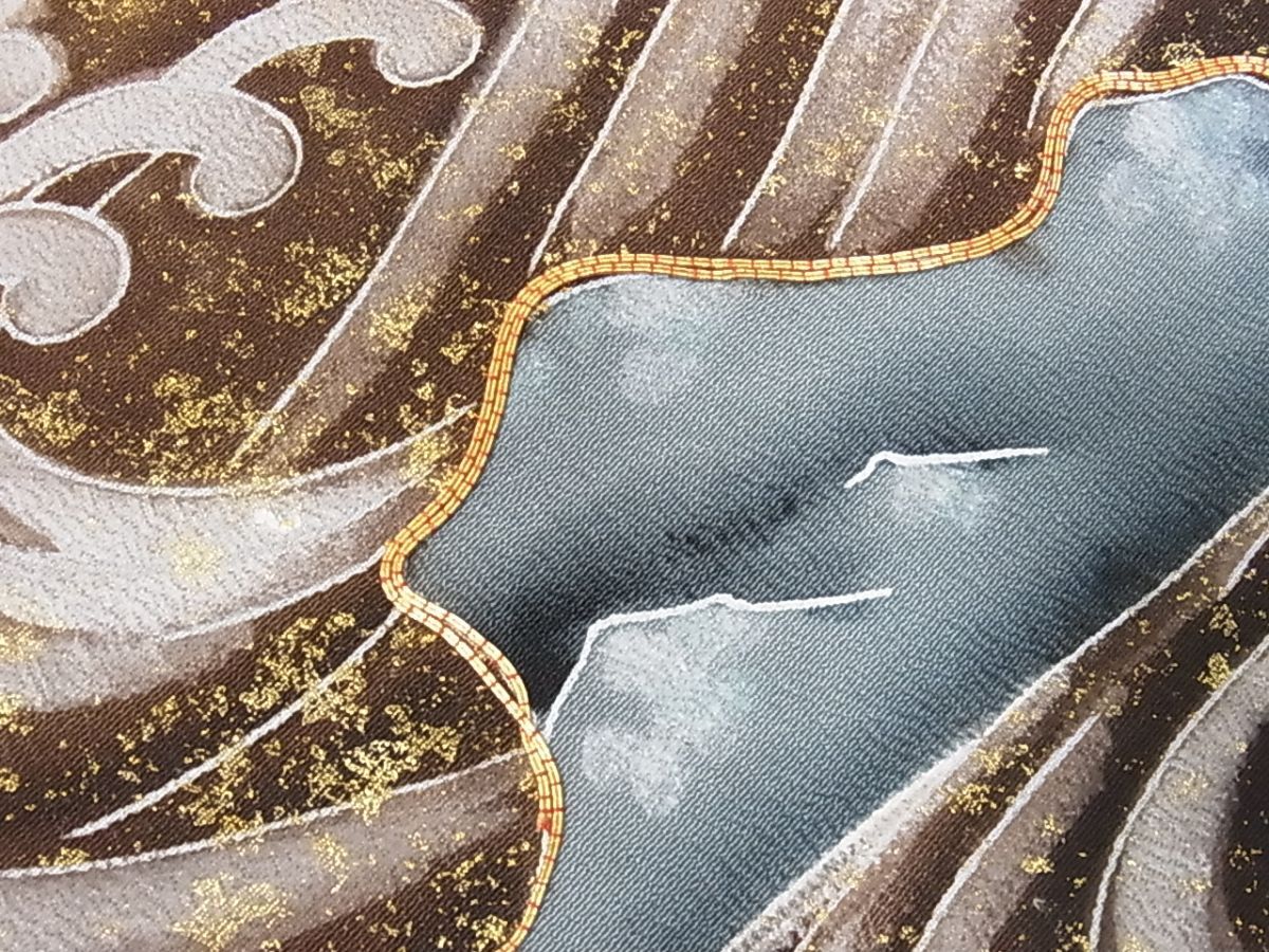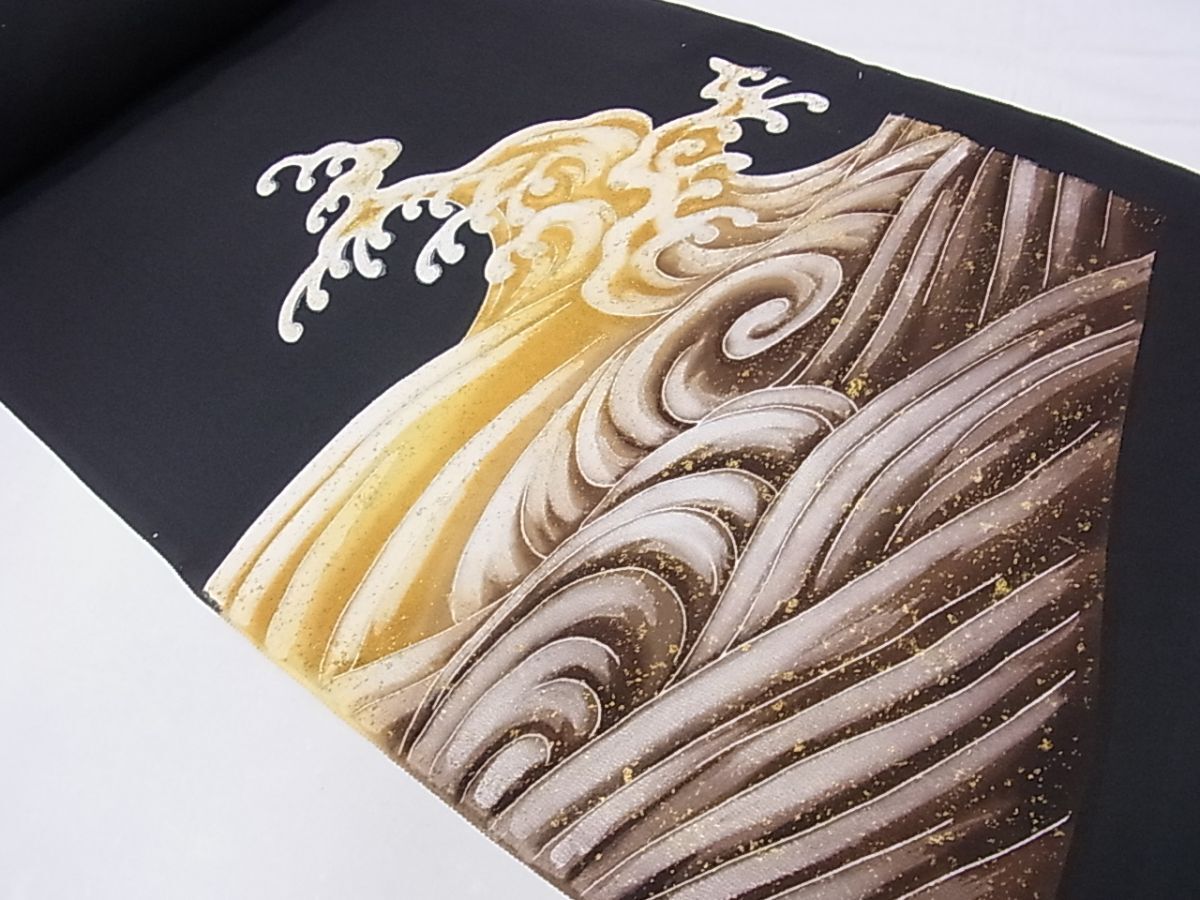 eふれんず◆黒留袖 反物 解き反物 着尺 駒刺繍 荒波文 金彩 正絹 未仕立て◆bm1248