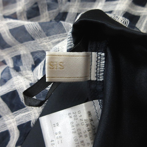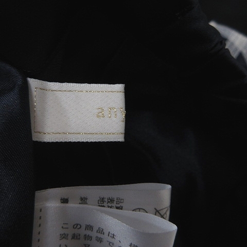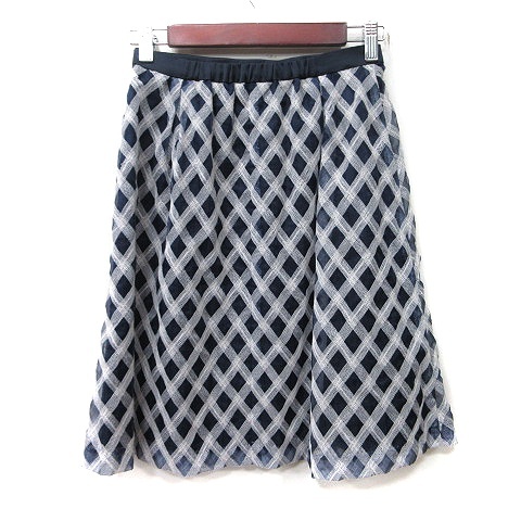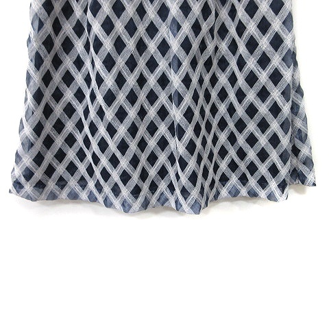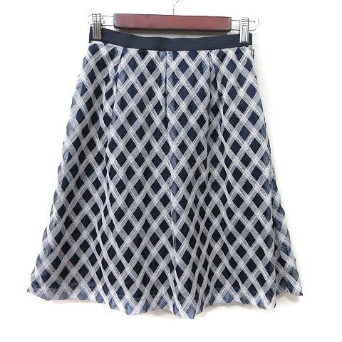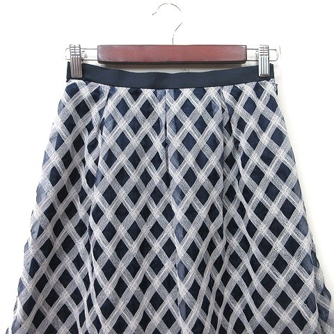 エニィスィス エニシス anySiS フレアスカート ひざ丈 チェック ナイロン 2 M 紺 ネイビー 白 ホワイト /YI レディース