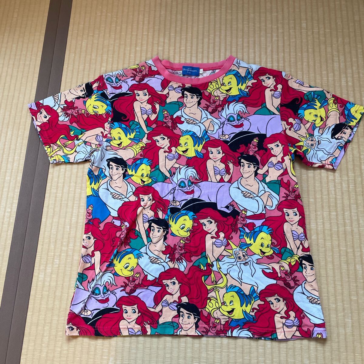 東京ディズニーリゾート リトルマーメイド 総柄 Tシャツ DISNEY RESORT アリエル 半袖Tシャツ Disney オフィシャルTシャツ 東京ディズニーシーになります。