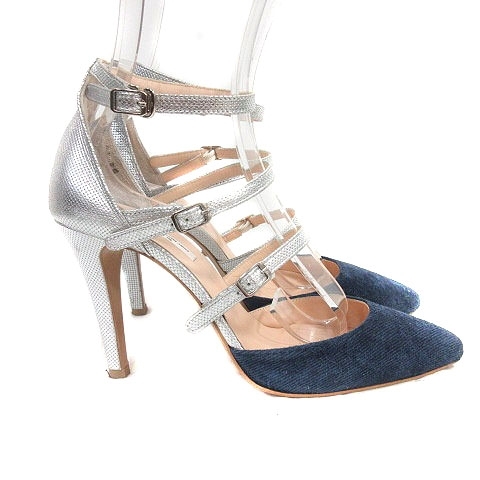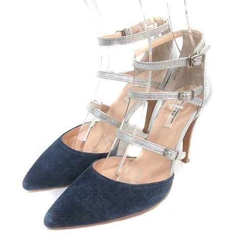 セブントゥエルブサーティー パンプス ポインテッドトゥ ストラップ ピンヒール 23 紺 ネイビー 銀色 シルバーカラー レディース