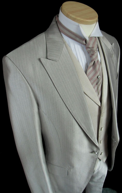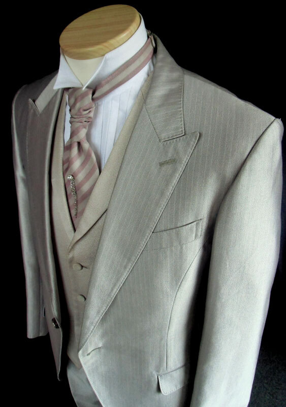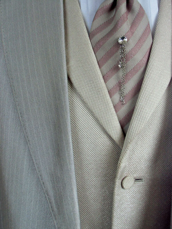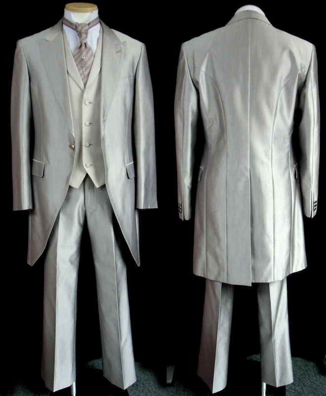 AB-M★シルバーグレー光沢生地のシャドーストライプ★ベストは淡いベージュにラメ地 タイは淡いピンク系ストライプでクリスタルピン付 貸衣装店で使用・手入れされていた新郎用のロングタキシード 専門店で管理されていた衣裳ですので状態は良い方です メーカーは「クラウディア」、ブランドは「Forte Kuraudia」 色めは明るいシルバーグレー、生地はシャドーストライプでとても光沢がある 素材は表地がウール59%、ポリエステル41% 光沢生地の為、色合いが光りに反射して、明るいグレー或いはシルバーに変化する 剣衿、左右のポケットは飾りでフラップ付 衿は前袷・裾・胸ポケット左右フラップの縁はステッチ加工 ボタンは模様が入ったシルバーの平たいもの 前1ヶ、袖口にはそれぞれ3ヶづつ 前裾は丸くカーブしているモーニング風のデザイン 背はセンターベント ベストはラメの入った淡いピンクベージュ色の生地 素材はシルク30%、ポリエステル60%、ナイロン10% 剣衿、左右にポケット、前袷は頭が平の包みボタン タイはピンク濃淡のストライプ、ジルコンピン付、ワンタッチの着脱式 上衣と共生地のパンツは細身のノータック ウエストにはアジャスターが付いて、サイズ調節可能 明るめの色合いがとても華やかなタキシード、披露宴や2次会・パーティに最適 【注意】写真のYシャツはイメージでセットではありません サイズ違いのタキシードの写真を利用、デザイン色とも全く同じものです 写真と現品とではモニター等により多少色合いが違います 【寸法】AB-Mサイズ173164 実寸法と計測方法は以下の通りです。現品を計測しています。 着用される方のスーツ等で寸法を確認してください。 計り方で多少の誤差が出ると思いますのでご了承下さい。 上着丈92cm位 袖丈60.5cm位 肩幅47.5cm位 ウエスト82~98cm位(アジャスター付き) 股下78cm位 【計測方法】 肩巾・・・背中側の左右の袖の縫いつけを直線で計測 袖丈・・・袖の縫いつけから袖口までを真下で計測 上着丈・・・衿の縫い目から裾までを計測 ウエスト・・・パンツの内側の周囲を計測 股下・・・・股の付け根から裾までを真下で計測 ※ヌード寸法ではありません現品を当方で実測しています 測り方により多少誤差があります、ご了承下さい 【状態について】 また、たたんだ状態での入荷保管の為、所々にシワがあります その他、特に目立った汚れ等はありません 全体にはきれいな状態だと思います ただ、あくまでも貸衣裳店で使用していた中古品です こちらで見落とした小さなシミやキズがあるかもしれません ご了承の上でご入札下さい | |||