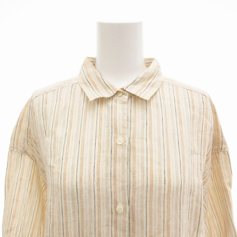 シップス SHIPS サフィランリネンビッグシャツ ブラウス ストライプ 長袖 36 S 白 アイボリー 311-11-1678 /FT レディース