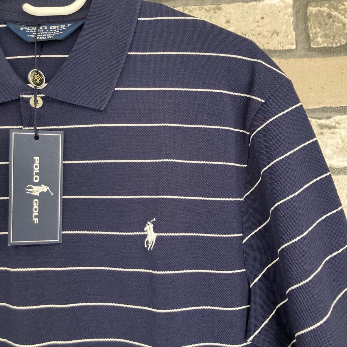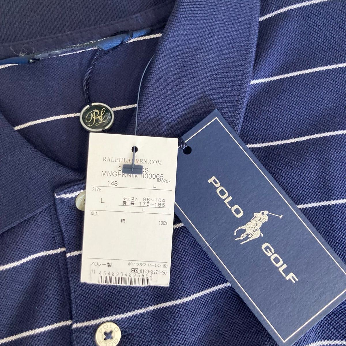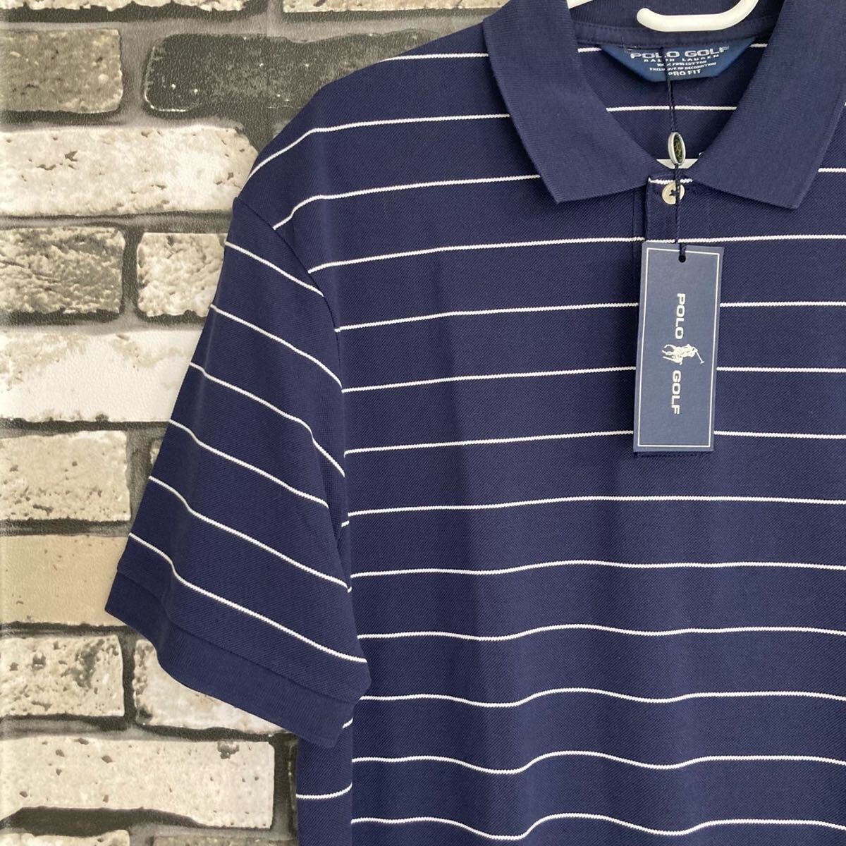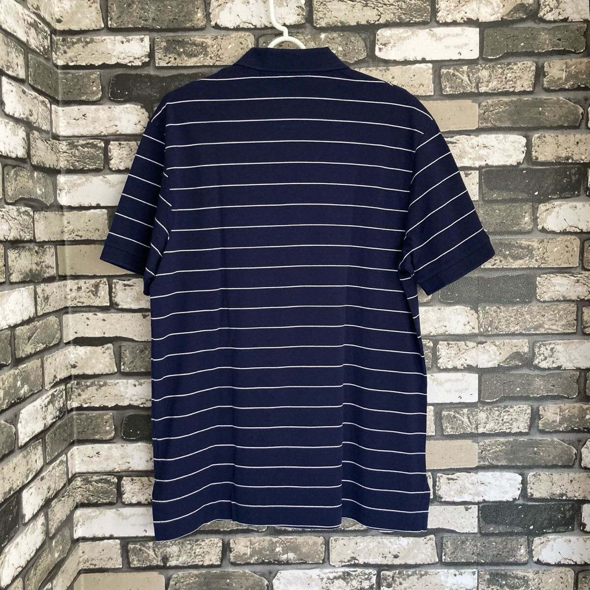 【未使用】ポロゴルフ ボーダー 半袖ポロシャツ ネイビーL ゴルフウェア