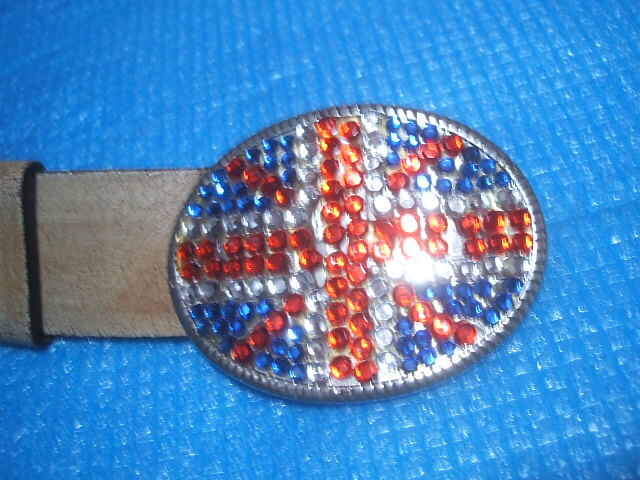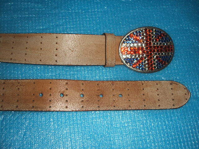 ☆ クラックドレザー(牛革かと思います)ベルト、ラインストーン使いメタルバックルのお品です。