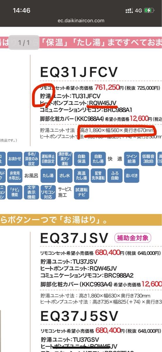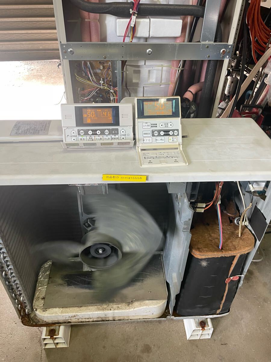 貯湯ユニットの型番ラベルが読み取れない状態でしたが、組合せのヒートポンプRQW45JVとタンクの縦横のサイズが一致したためTU31JFCVだと判断しました。 |