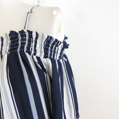 イング INGNI オフショルダーカットソー ストライプ 半袖 紺 グレー M *A774 レディース