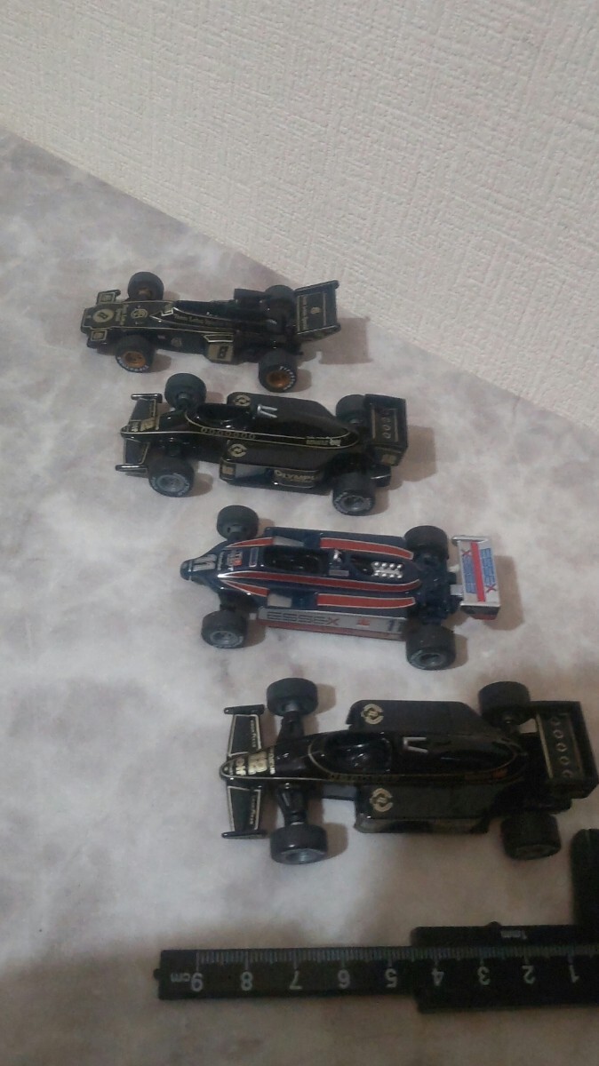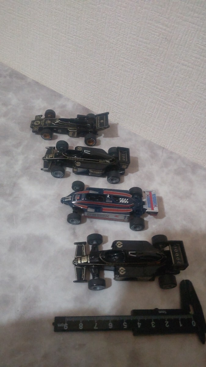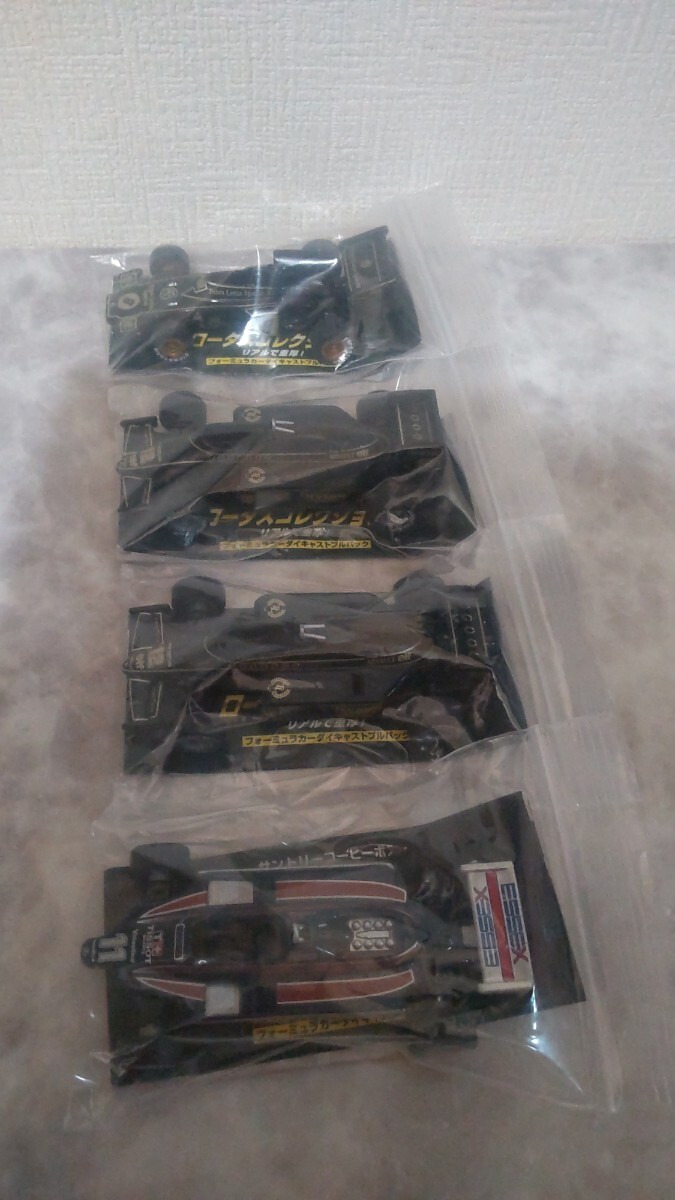 サントリーコーヒーボス、ロータスコレクション、リアルで重厚!フォーミュラーカーダイキャストプルバック、ラインナップ全6種の中から4台の出品です。