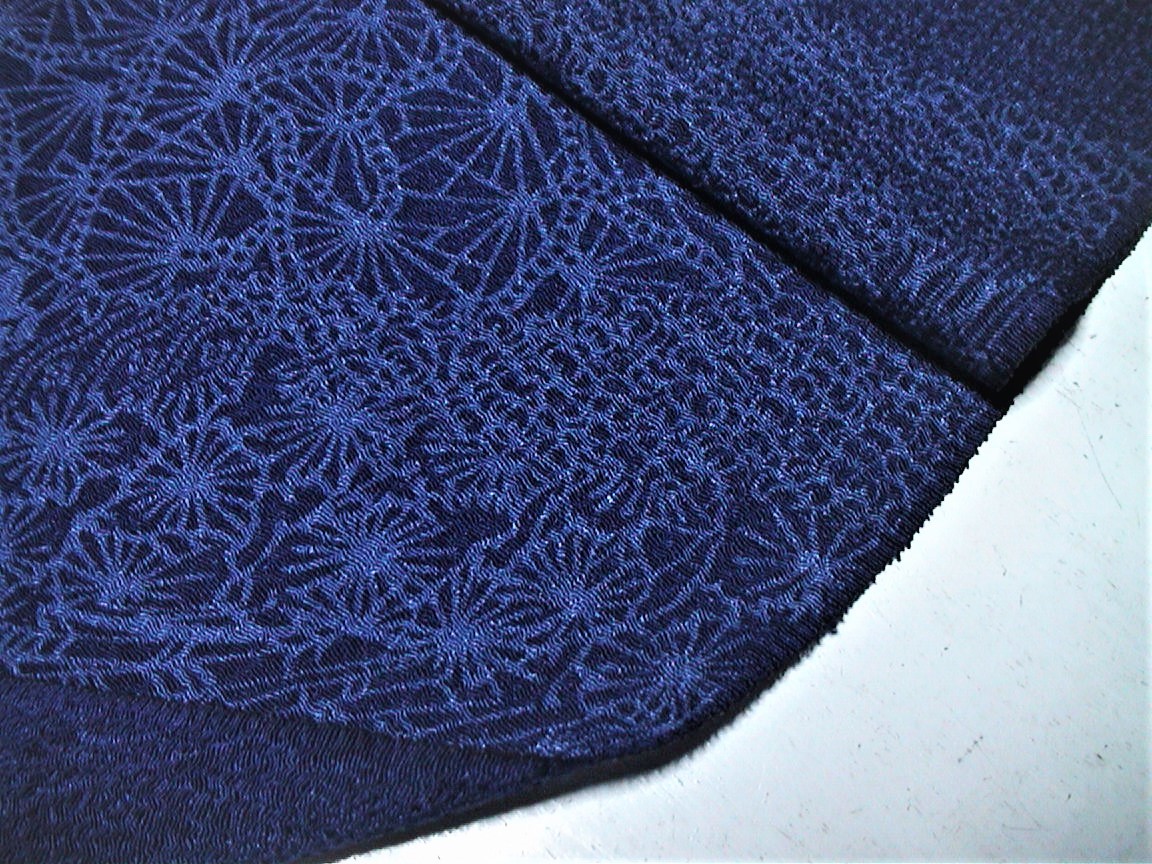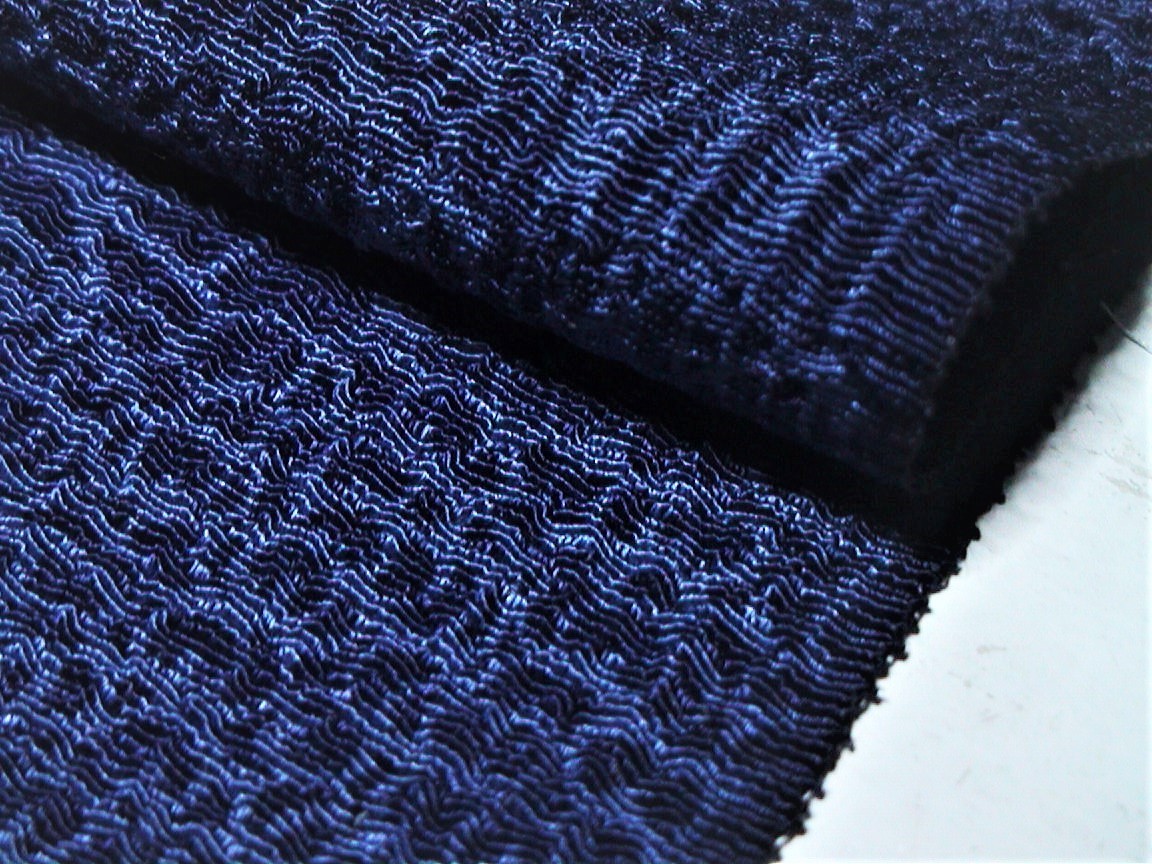●古着きものはぎれ。古布生地。素材 正絹鬼しぼ縮緬。地色群青色に道長取り模様。 ざくっとした厚手のちりめん。リメイク、パッチワーク、小物作りにどうぞ。