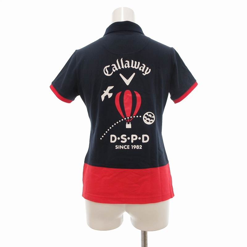 キャロウェイ CALLAWAY ポロシャツ ゴルフウェア バックプリント S 紺 ネイビー /UO ■MA レディース