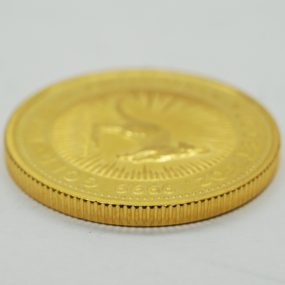 | 備考 | オーストラリア・パース造幣局の製造する地金型金貨です。表面のデザインはカンガルー、裏面はエリザベス2世です。カンガルーのデザインが毎年異なり世界中のコレクターに人気があります。 年号:1991年 表面デザイン:カンガルー 裏面デザイン:エリザベス2世 | ||||||