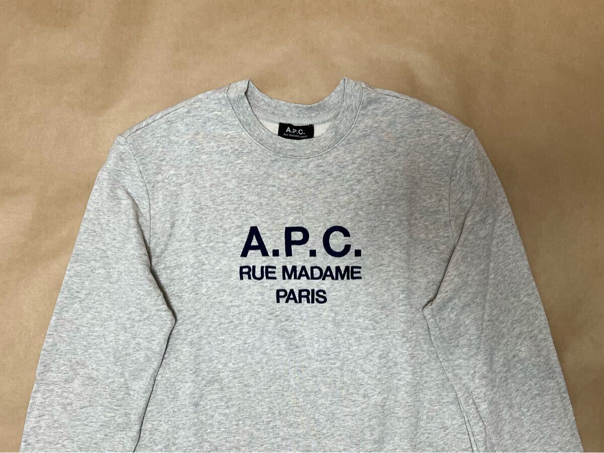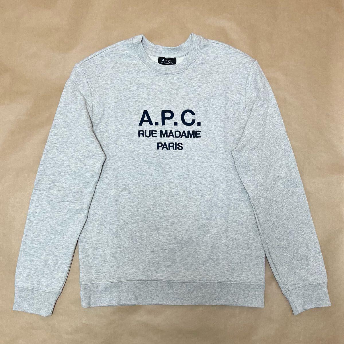 美品 A.P.C. RUFUS スウェットシャツ 杢グレー S ロゴ 刺繍 クルーネック 長袖 トレーナー APC アーペーセー @b203