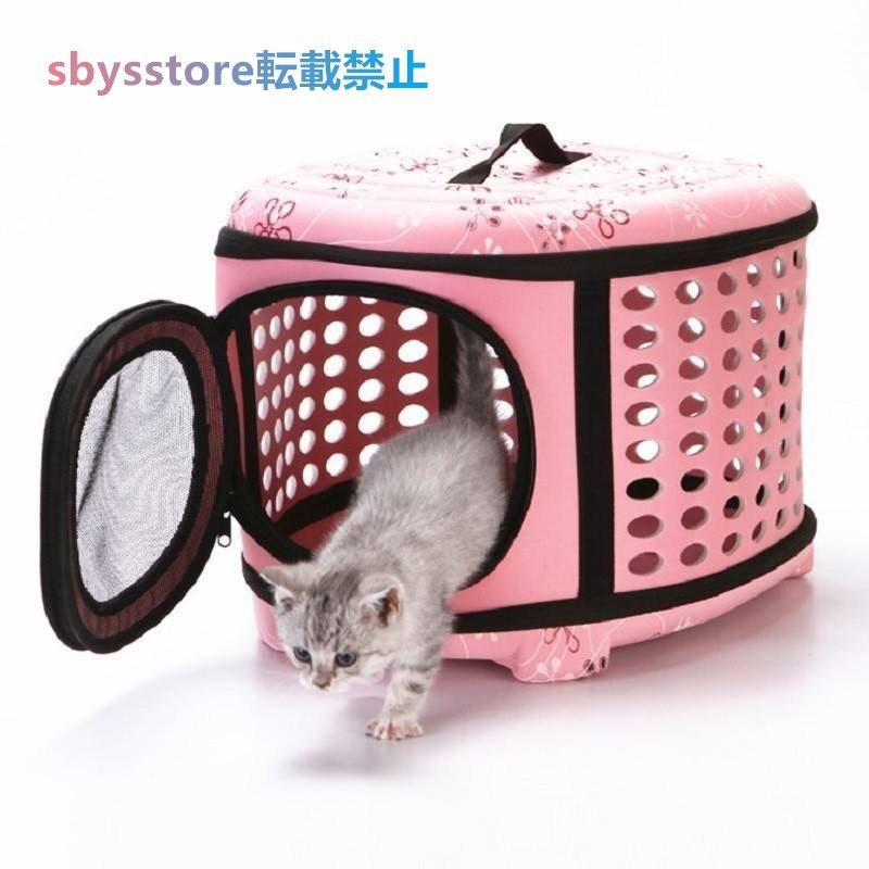 キャリーケース 犬猫用 ゲージ 持ち運び ポータブル 花柄無地 メッシュケージ