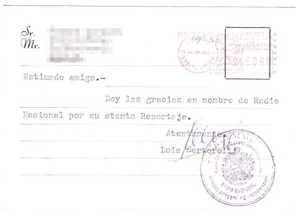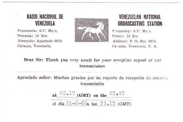 | 商品説明 | Radio Nacional de Venezuela のベリカードです。カード取得者の名前は出品上、画像から消してあります。 |