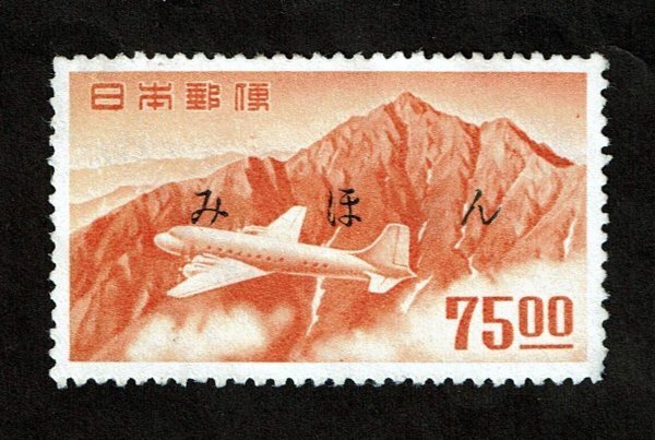 N803■【みほん字入り・糊落ち】1952年  航空切手 立山航空(銭位) 75.00円■希少・良好