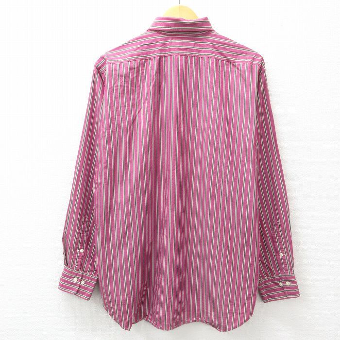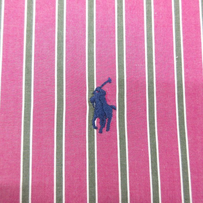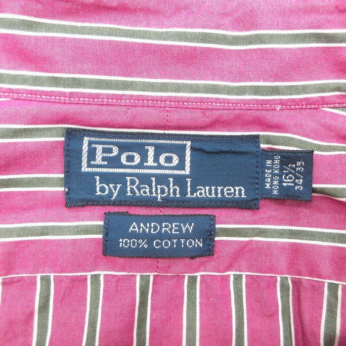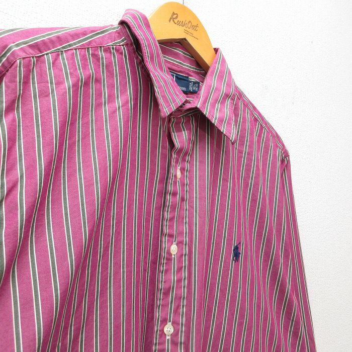 【商品名】 XL★古着 ラルフローレン 長袖 ブランド シャツ メンズ 90年代 90s ワンポイントロゴ ANDREW コットン エンジ系他 ストライプ