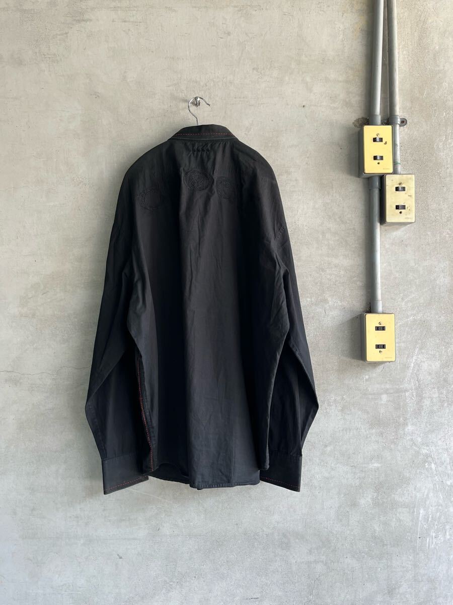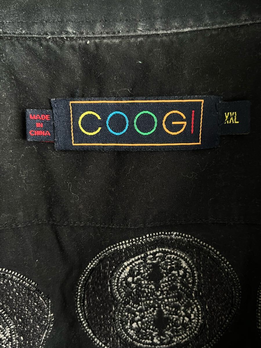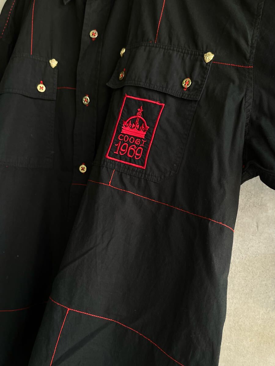 80s 80年代 90s 90年代 coogi クージ 刺繍 パイピング ビンテージ 長袖シャツ 黒 金 赤 古着 ビッグサイズ 綿 Euro ユーロ イタリア XXL