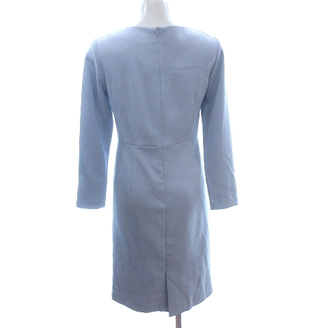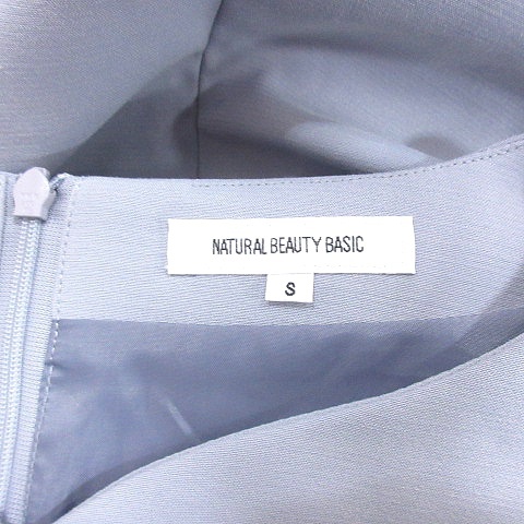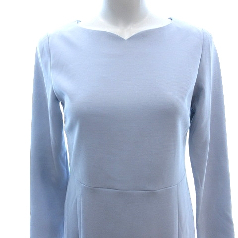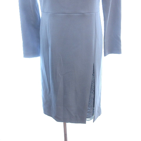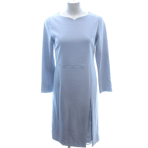 ナチュラルビューティーベーシック NATURAL BEAUTY BASIC ワンピース ひざ丈 ハートシェイプドネック 切替 レース 長袖 S 水色