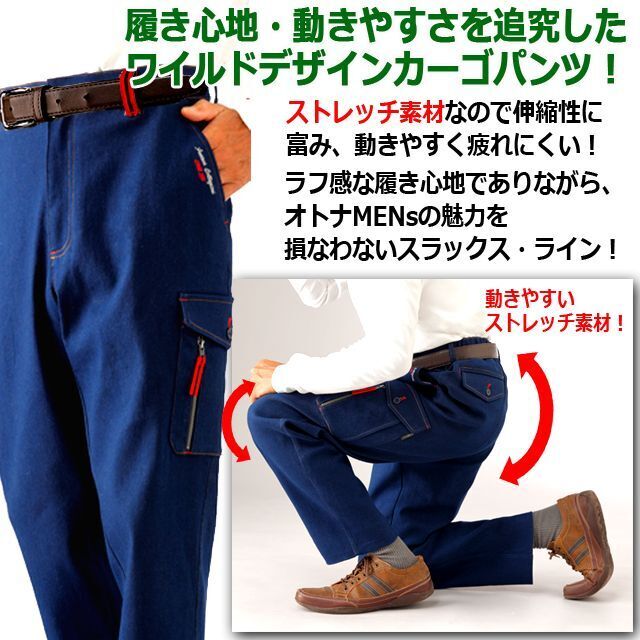 aa00011-1-nb409 ウエスト82-90 股下65cm FRANCO COLLEZIONI 7ポケットストレッチ素材デニム刺繍入りカーゴパンツ