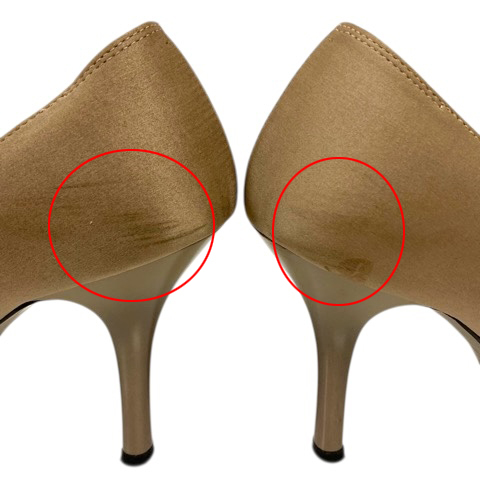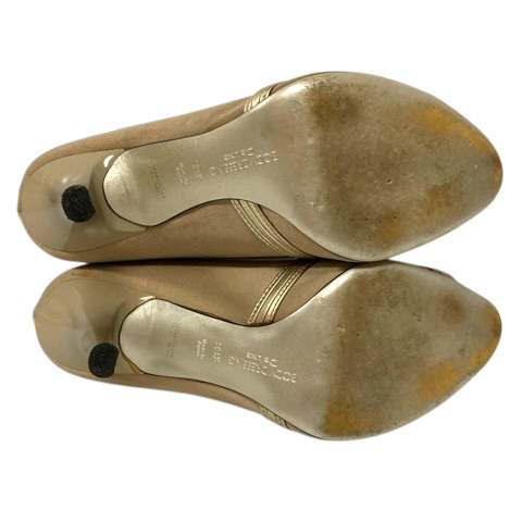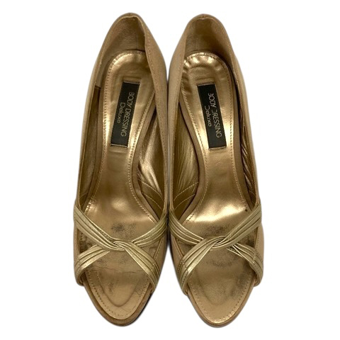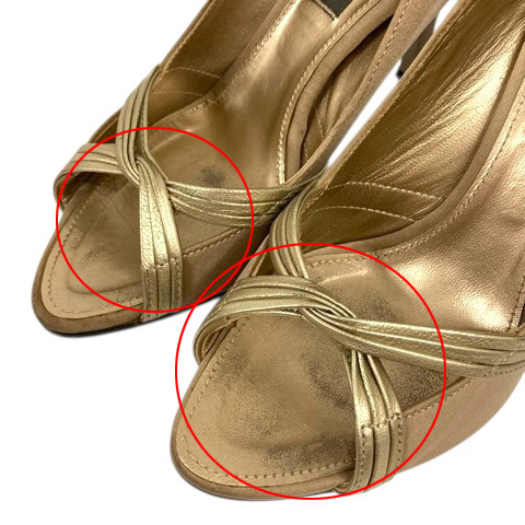 ボディドレッシングデラックス パンプス サンダル ポインテッドトゥ オープントゥ ハイヒール ピンヒール サテン 切替 23 1/2 ベージュ ゴールド 金 レディース