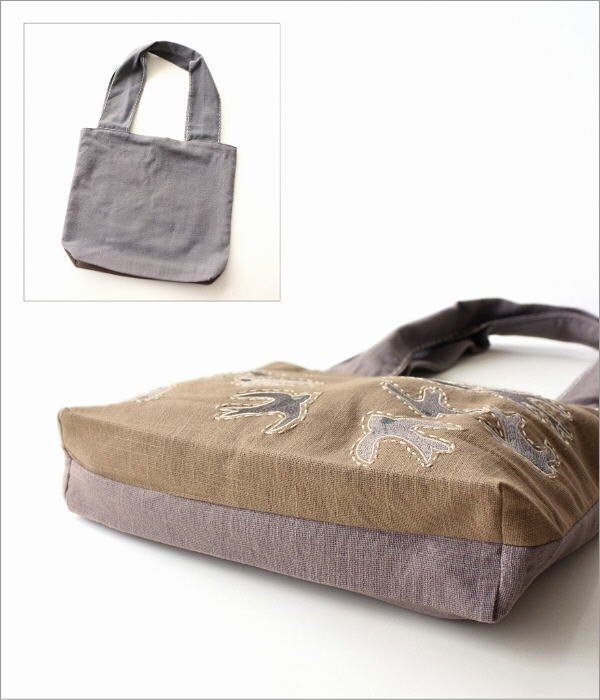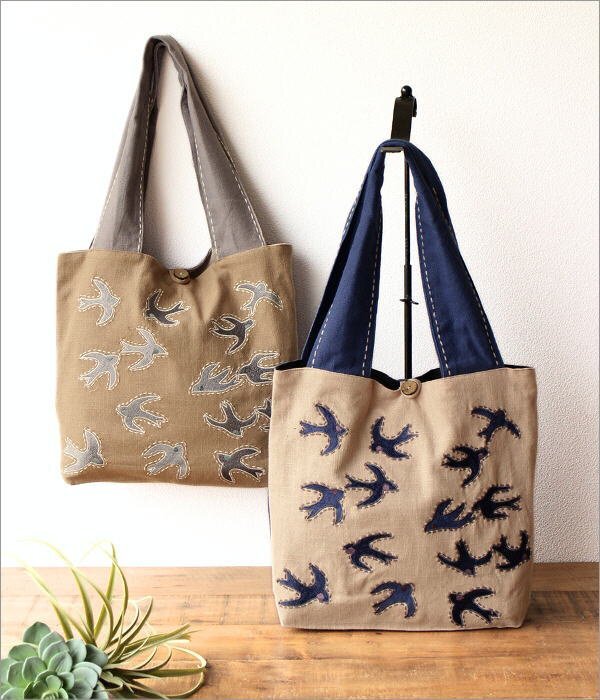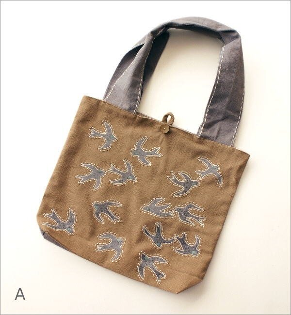 こちらのページでは【Aカラー】のみの販売です 自由に飛び回る燕を刺繍を施した 正面と背面で色が異なる バイカラーのコットントートバッグ しなやかな風合いが体にやさしく沿い、 ハンドルは肩がけもできる長さ&幅広めで 肩や腕への負担を軽減 A4のファイルがすっぽり収まるサイズに 内ポケットがついていて メインはもちろん、 荷物が多い日のサブバッグとしても◎ 商品名 : スワロー刺繍トートバッグ 商品番号 : kan2112 全体サイズ(cm) : 幅37×奥行7×高さ32 ※ハンドル含まない ハンドル空間高さ : 約25 仕様 : 内ポケット×2 ボタン開閉 材質 : 綿100% 重量 : 220g 生産国 : インド ※摩擦・水濡れにより衣類などに色がつく事がありますのでご注意下さい。汗や雨等に濡れた場合、シミが出来たり色のにじみ・色移りが発生する事があります。濡れた場合は素早く拭き取り乾かしてください ※手作り品につき、編みむらや小傷等は予めご了承下さい ※ディスプレイによる色の違いはご了承下さい |