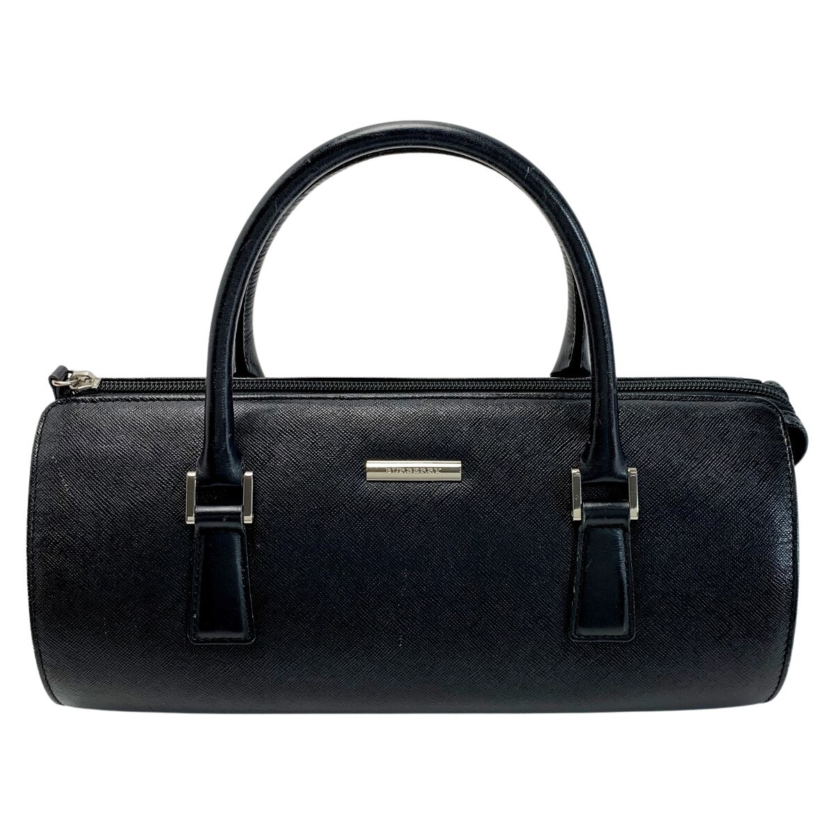 ☆☆ BURBERRY バーバリー レザー ブラック ミニボストンバッグ ドラム型 シルバー金具 傷や汚れあり