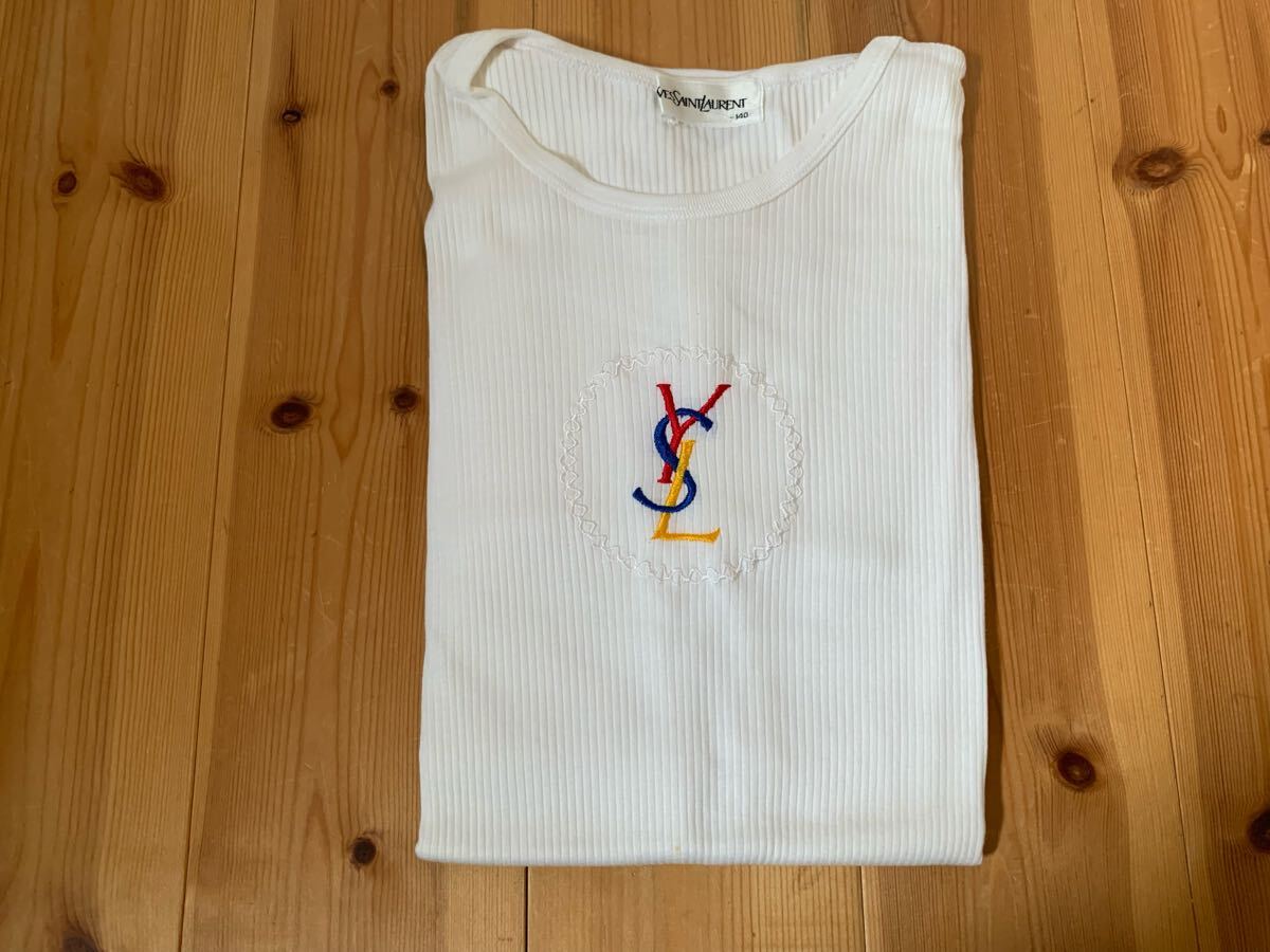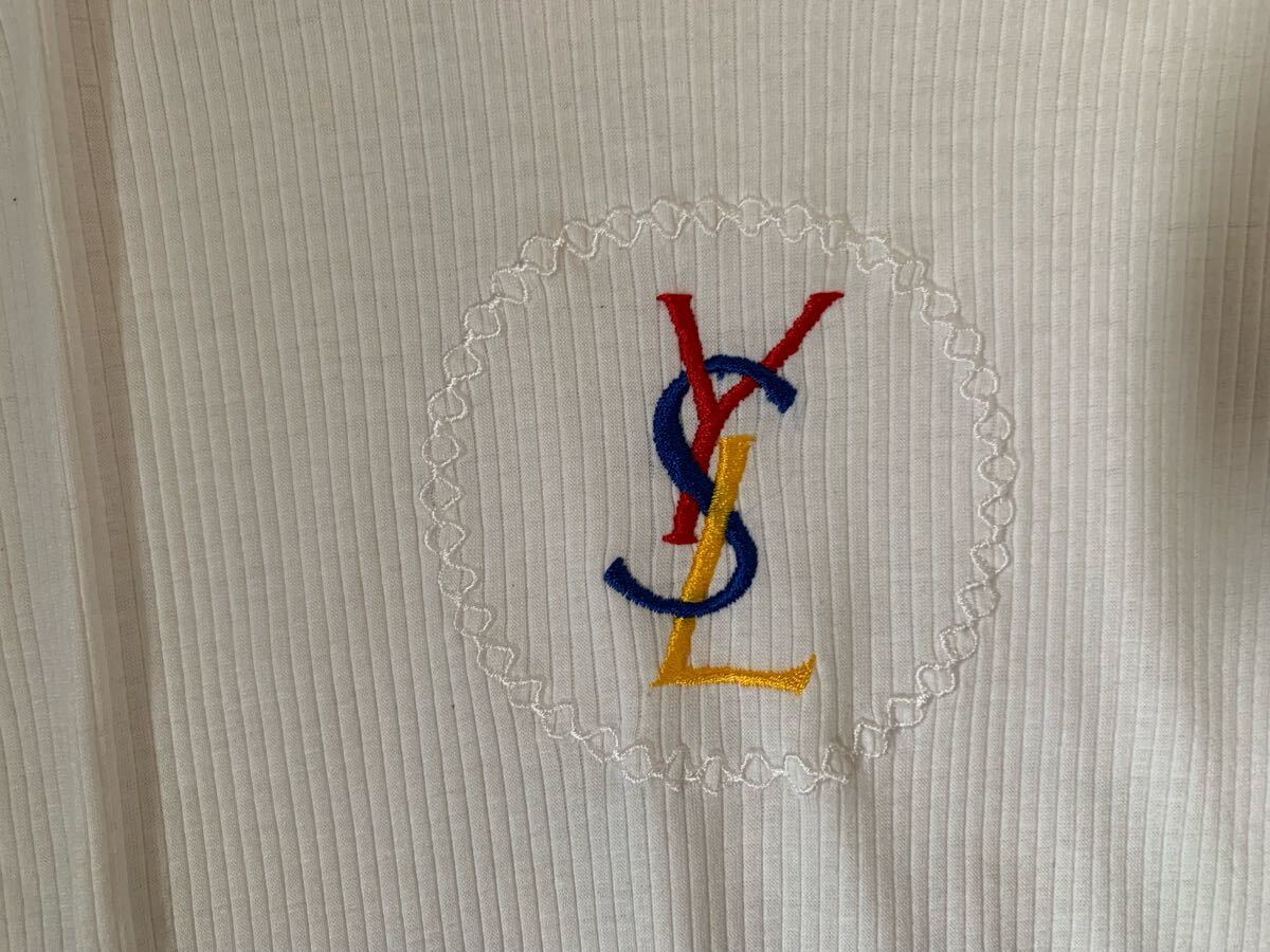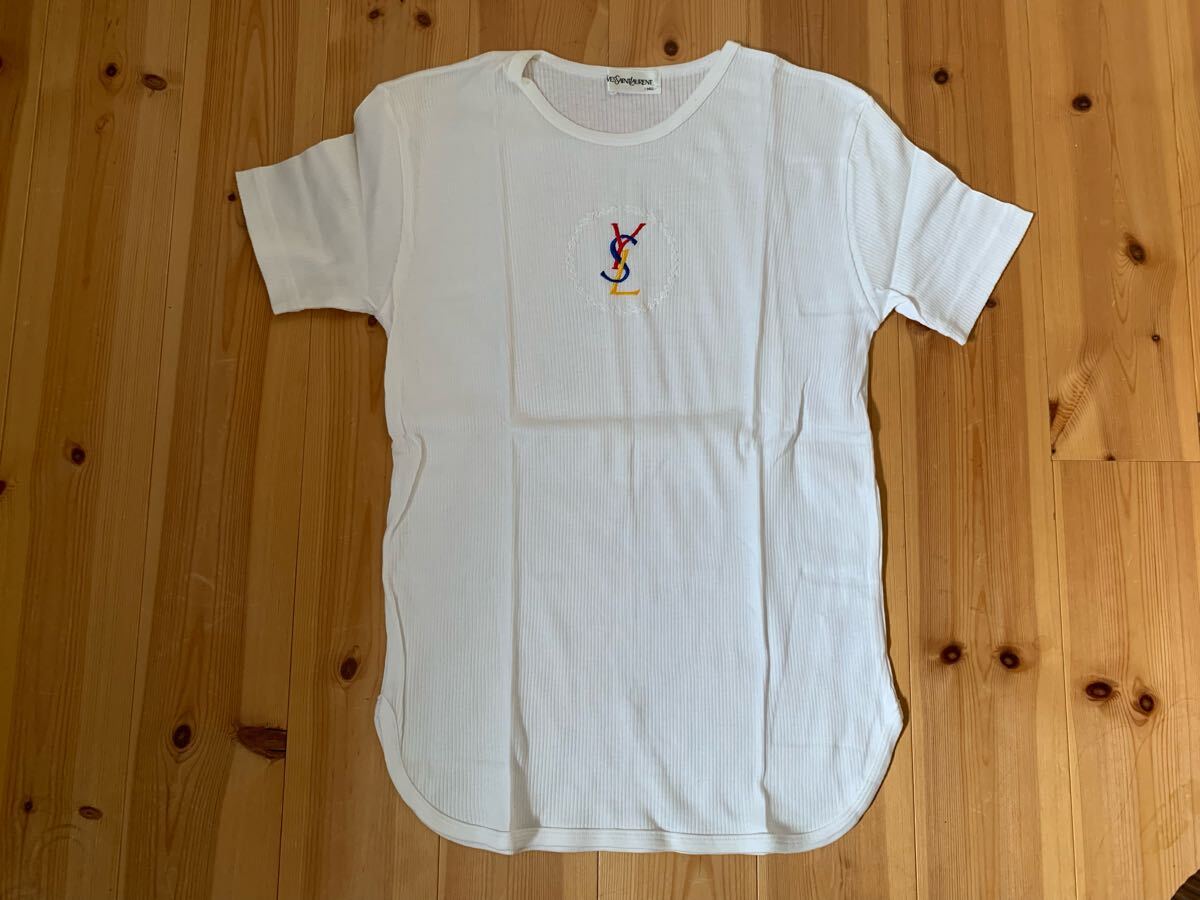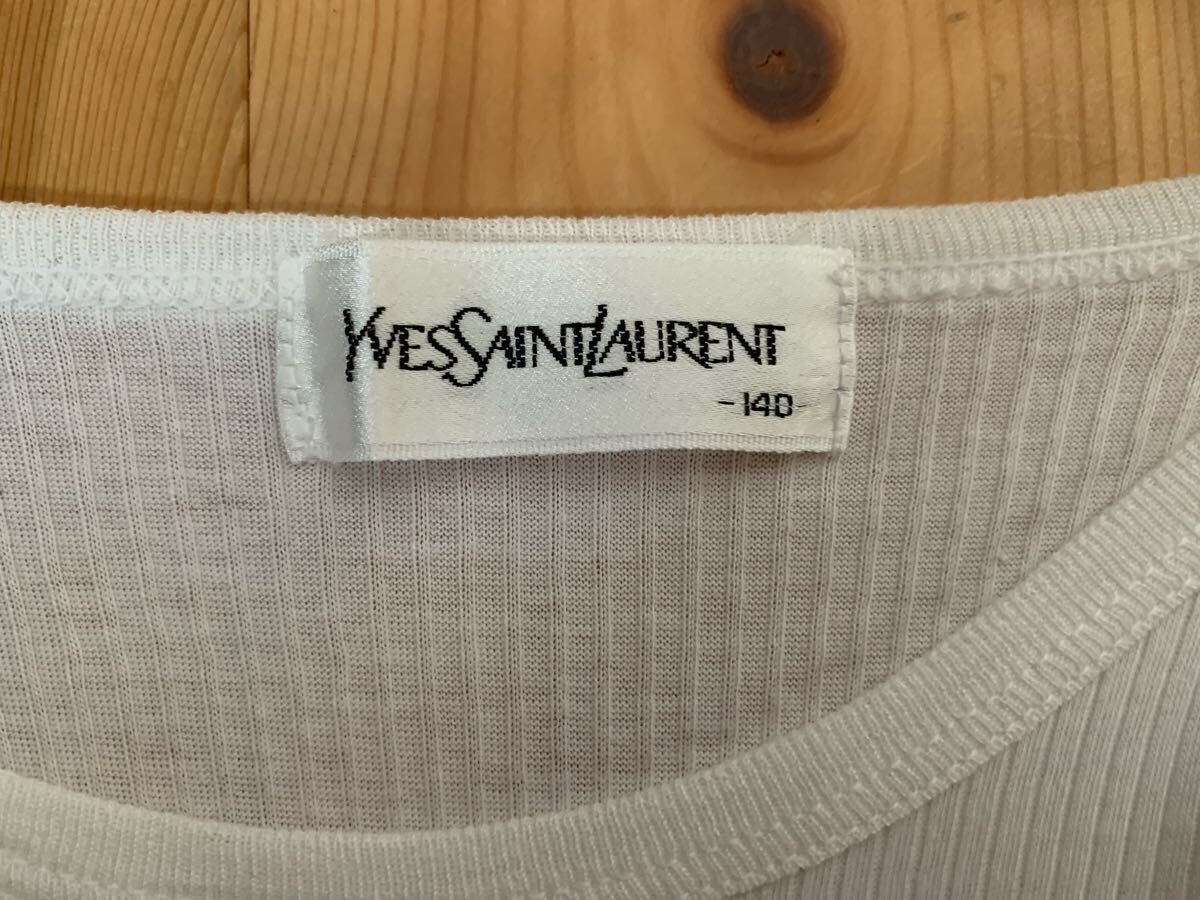 YSLロゴ刺繍入りのホワイトTシャツ、サイズ140。